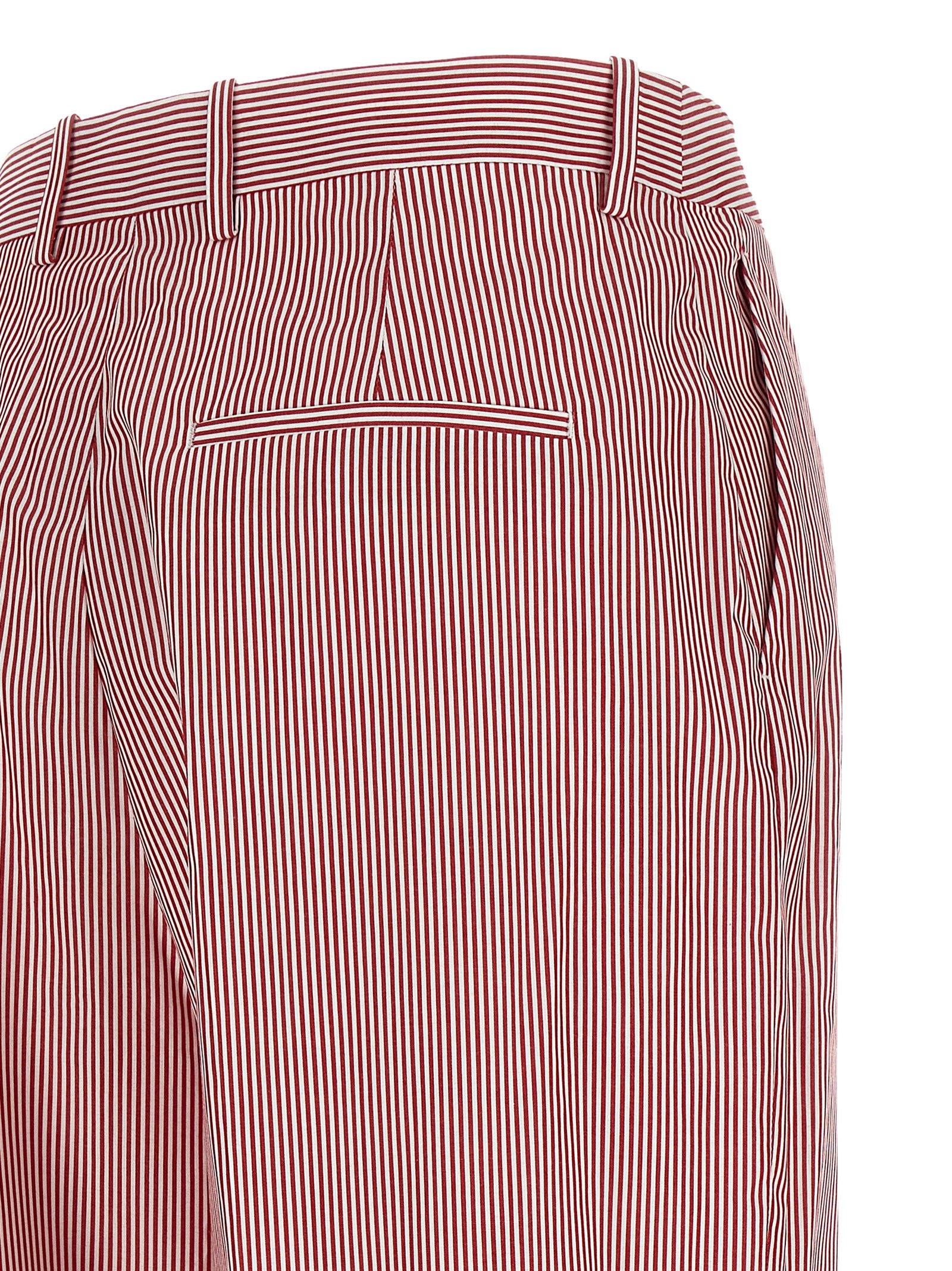 ‘Juno’ tailored pants in striped cotton poplin with double front pincer, wide leg, front hook closure, slanted side pockets and front stretched pleat.