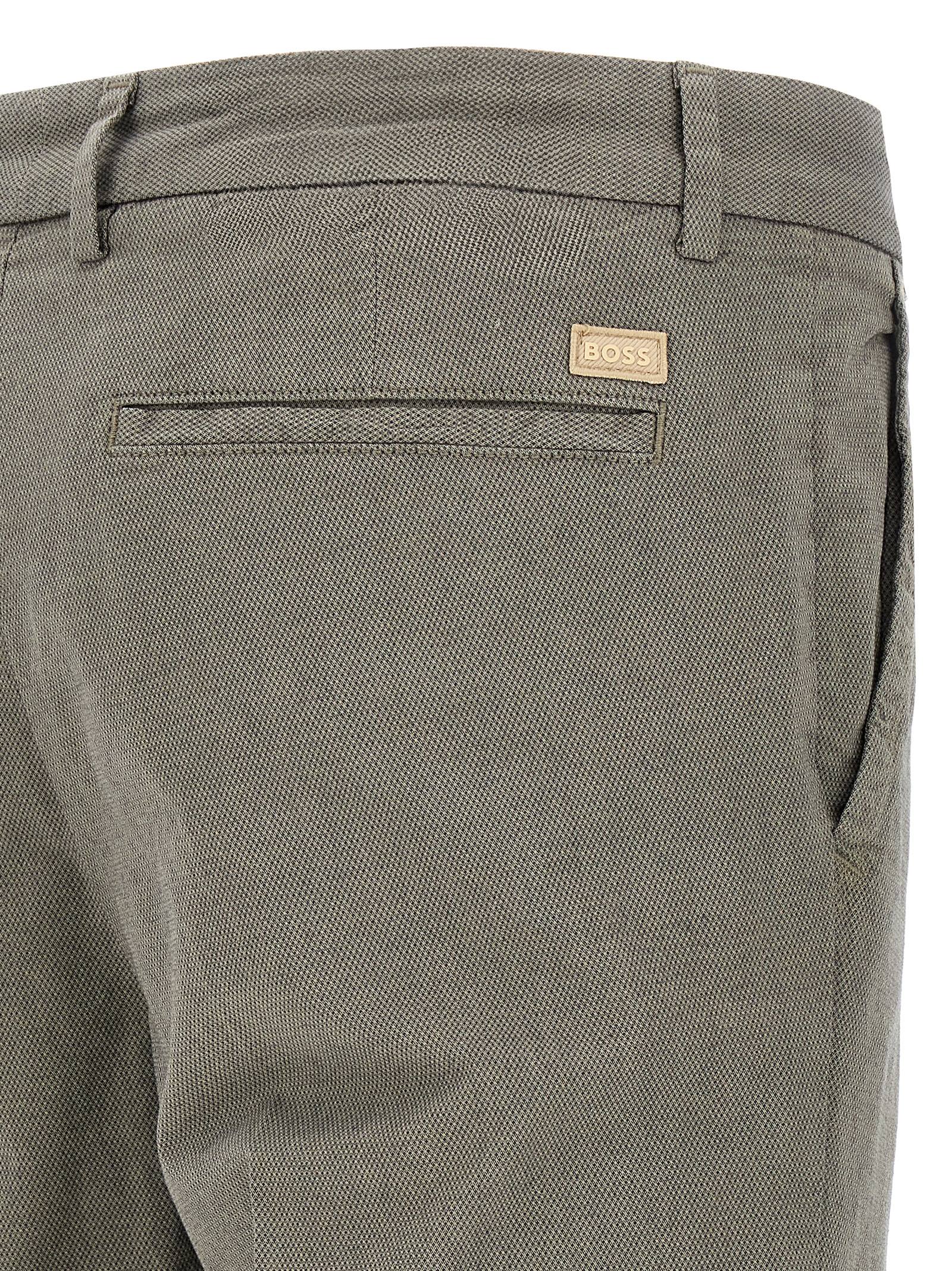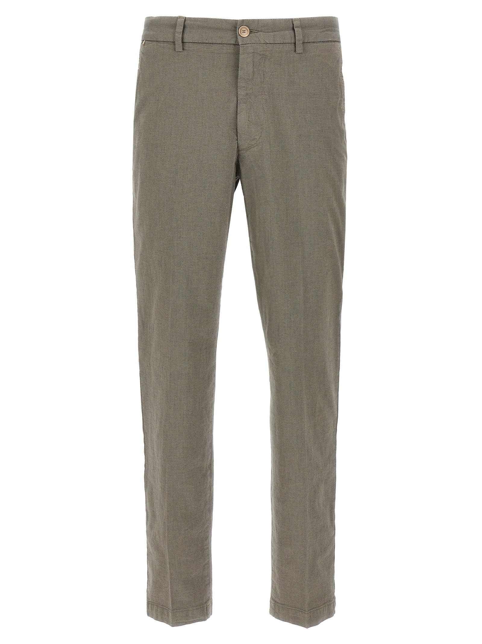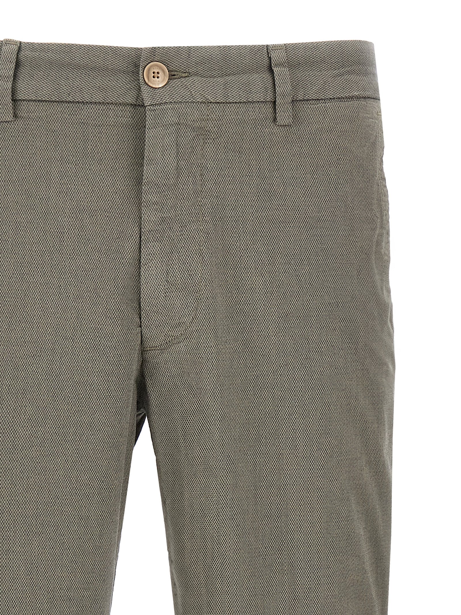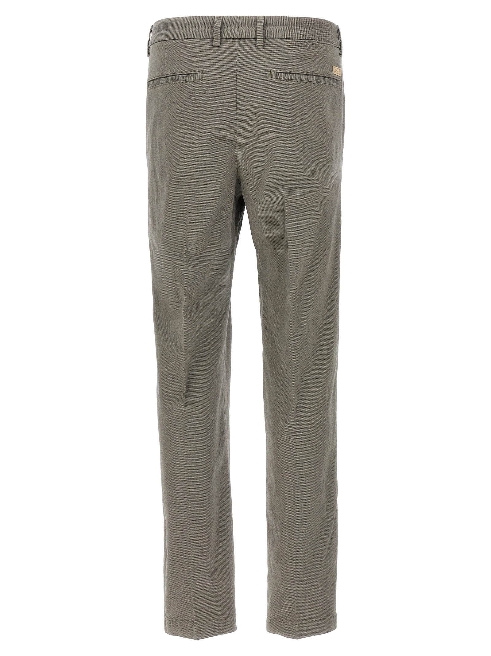 Micro patterned stretch cotton jersey pants Kaiton, stretched pleat, zip and front button closure, pockets.