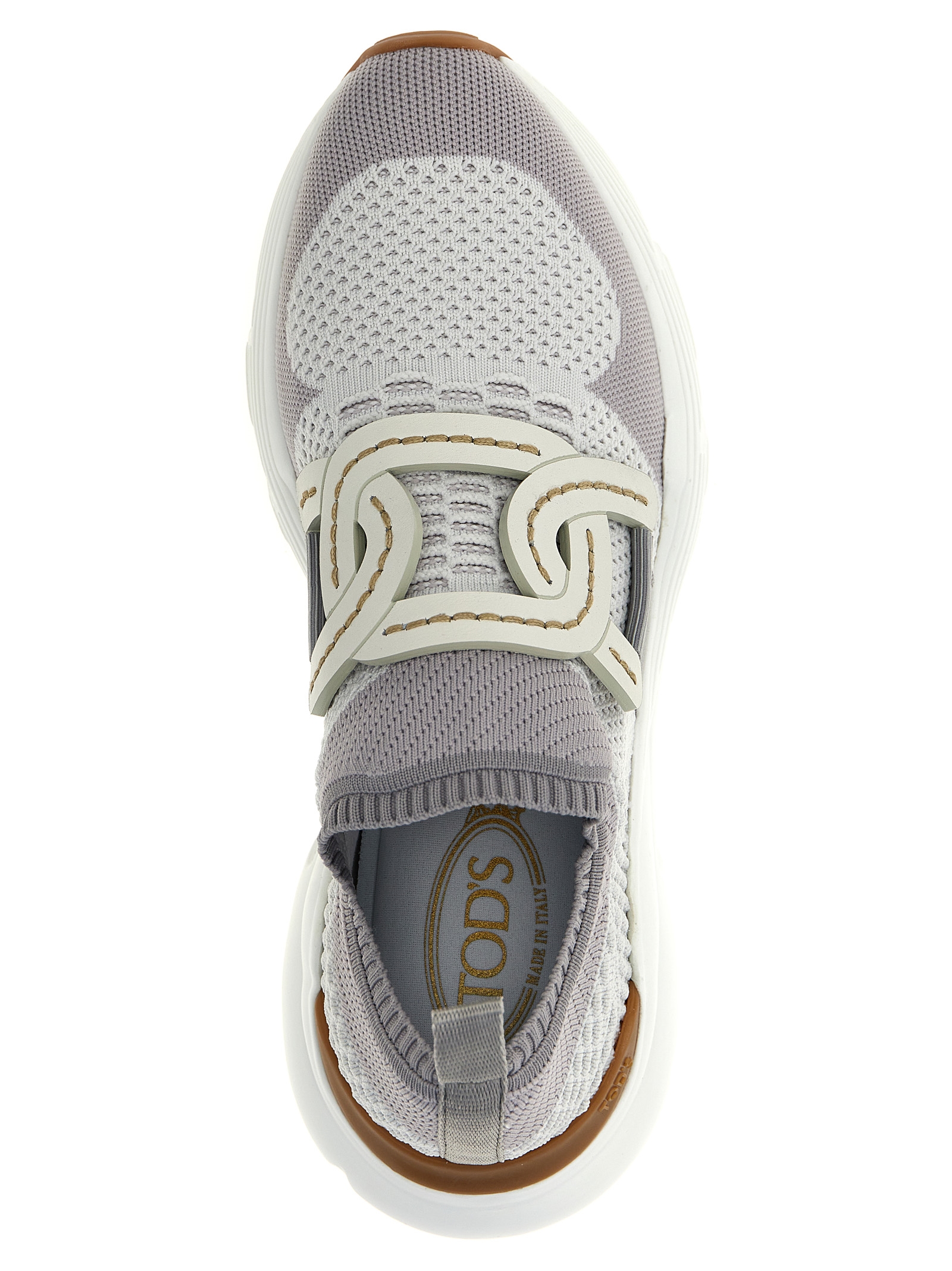 ‘Kate’ tech knit sneakers with leather chain detail, slip on model, rubber sole.