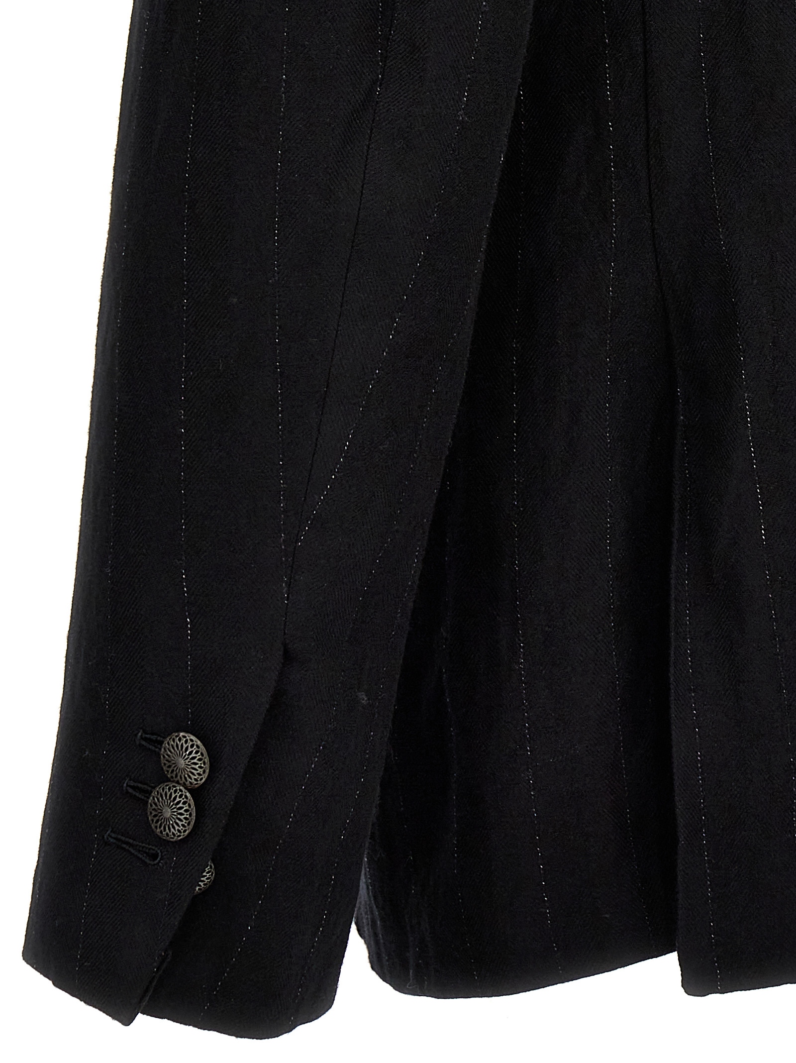 ‘Keanu’ single-breasted blazer in pinstriped cotton blend with button closure, pockets, long sleeves, back vents.