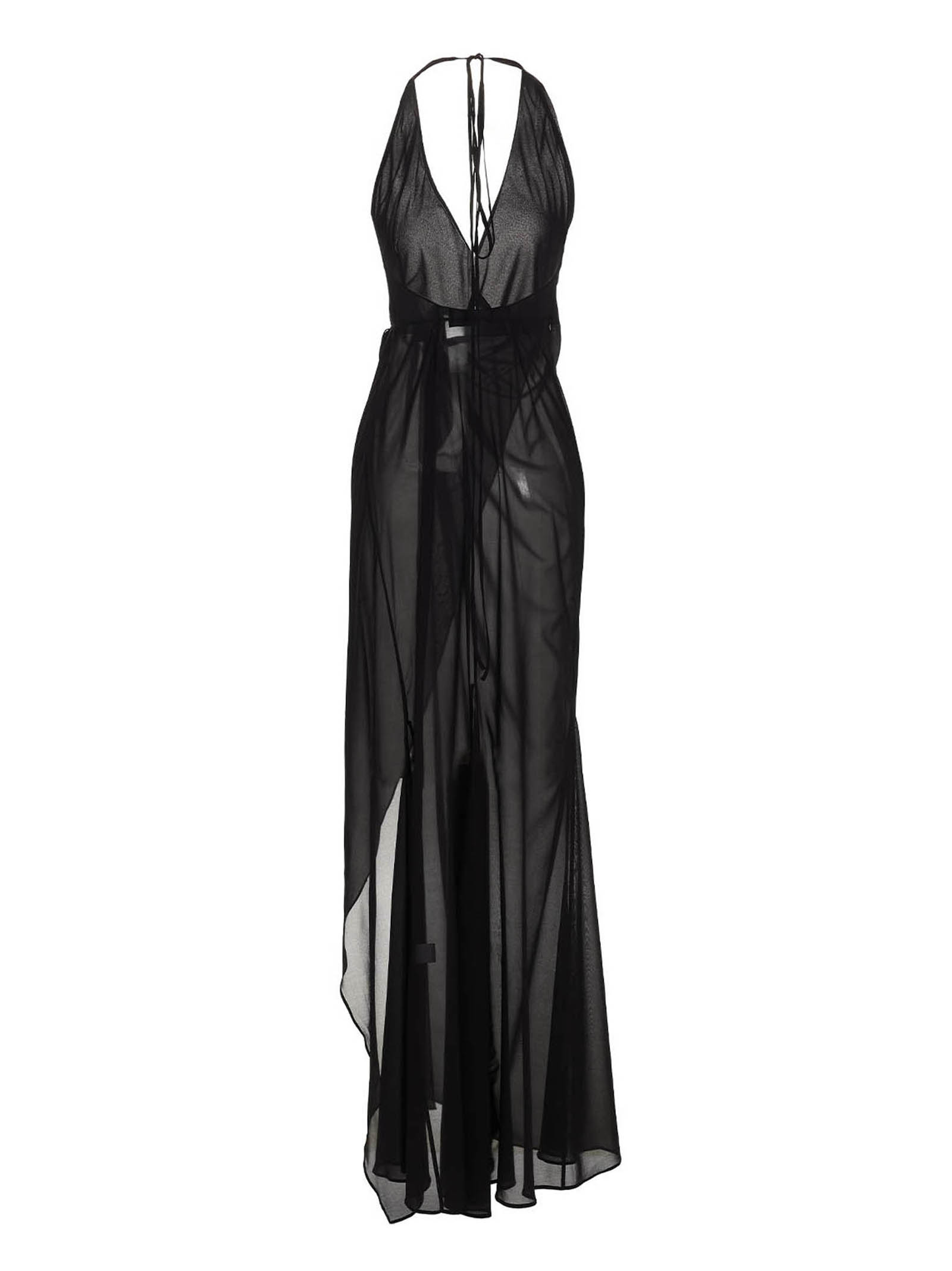 ‘King Tide’ silk blend wrap dress featuring a halter neckline, side lacing and a metal loop at the waist.
