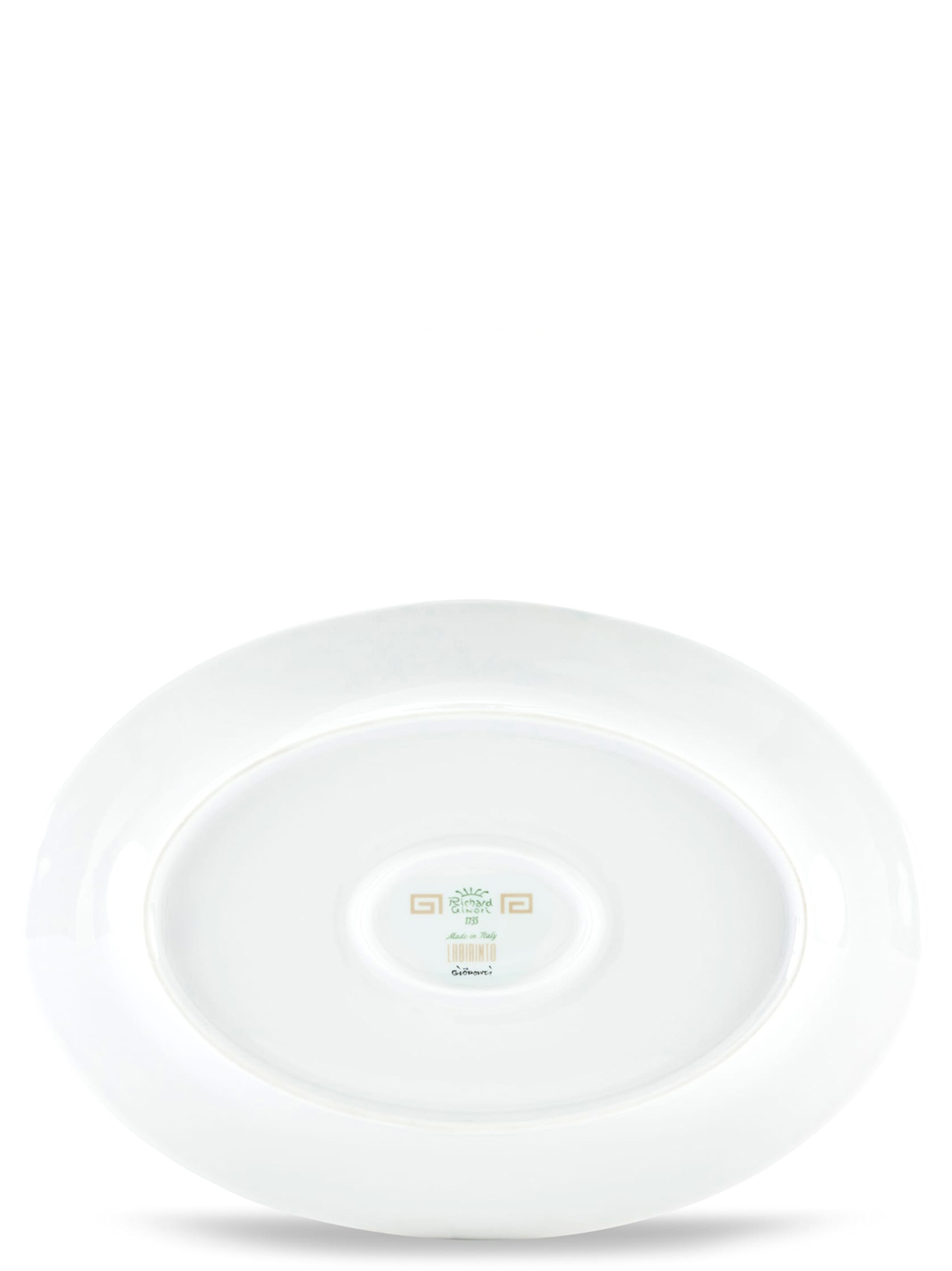 Oval porcelain tray with beige cachemire decoration and gold thread. ‘Labirinto’ collection by Gio Ponti.