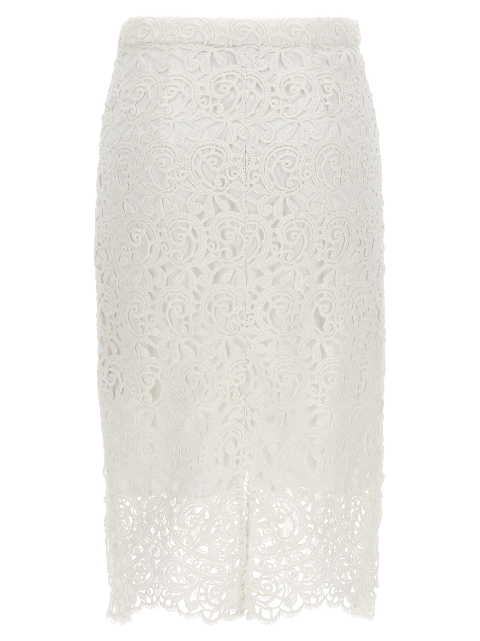 Lace skirt, with satin lining, a side zip closure and a back split.
