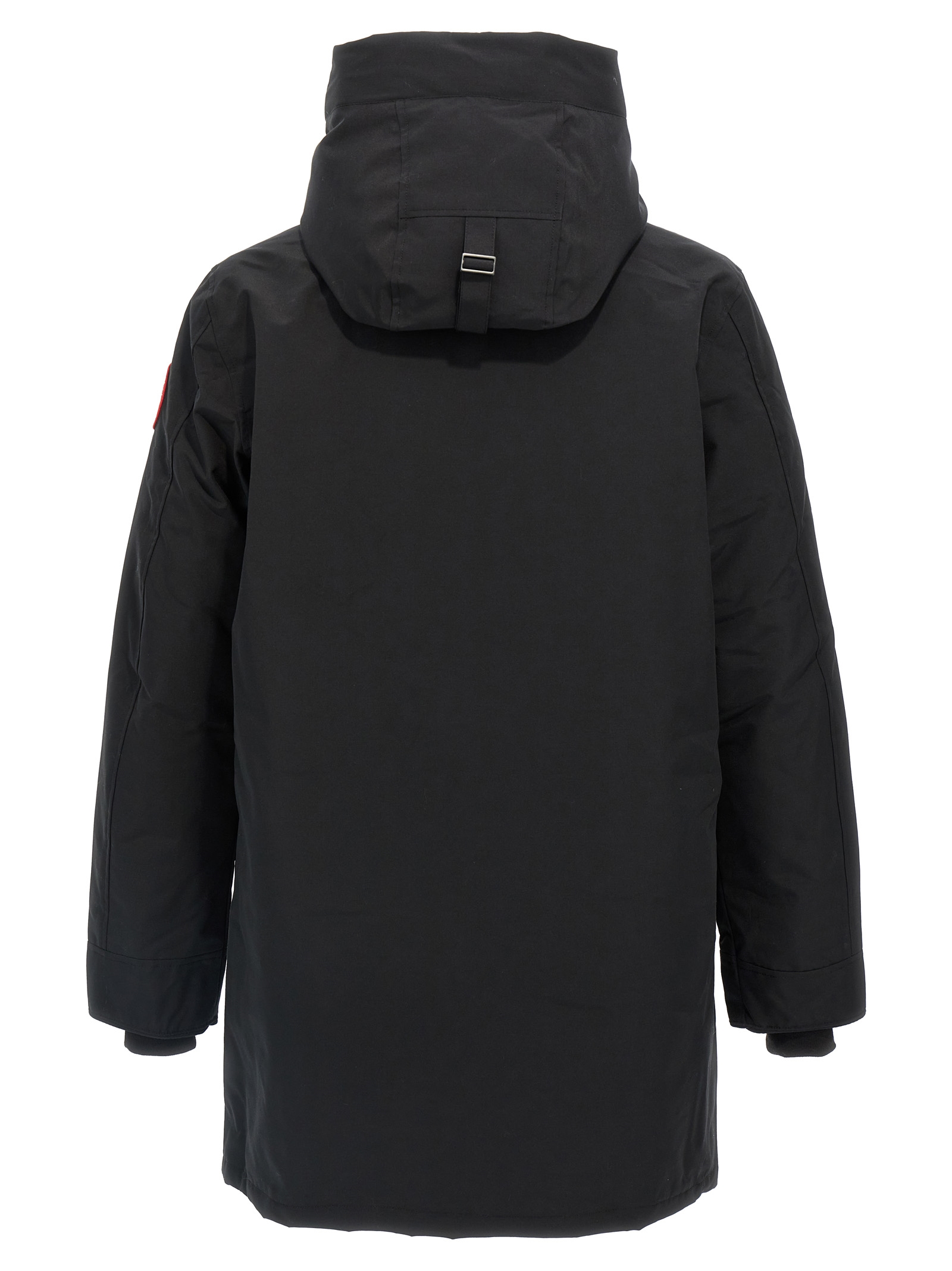 Long ‘Langford’ parka in Arctic Tech® padded with goose down, hood with removable insert for changing finishes, high collar, front zip and snap button closure, pockets, long sleeves with CORDURA® piping, windproof cuffs, and logo patch.