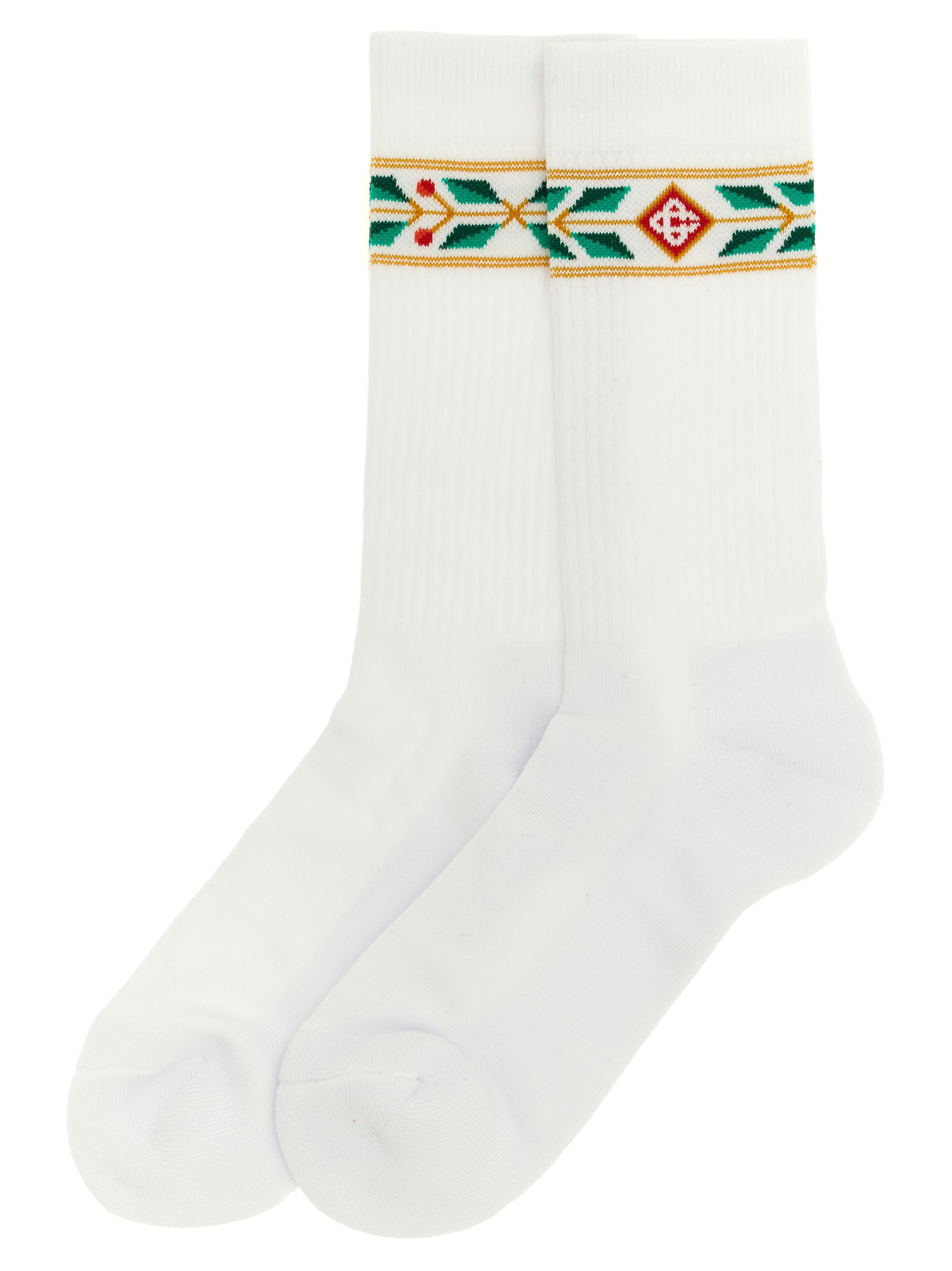 Ribbed stretch cotton blend socks with ‘Laurel’ jacquard pattern on the top.