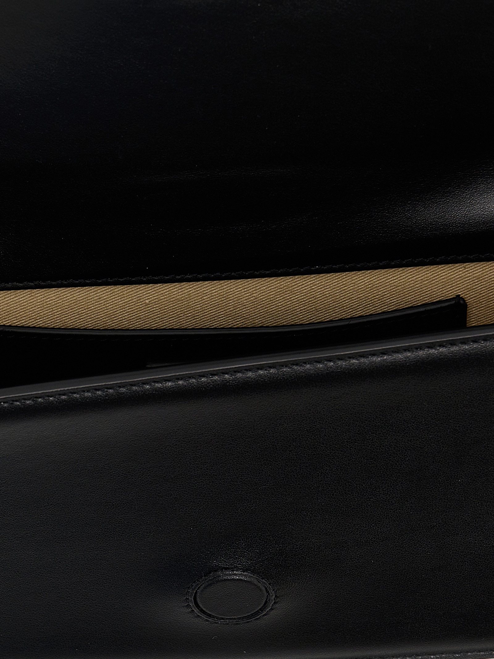 Le Bambino Long leather shoulder bag with magnetic flap closure, front metal logo appliqué.