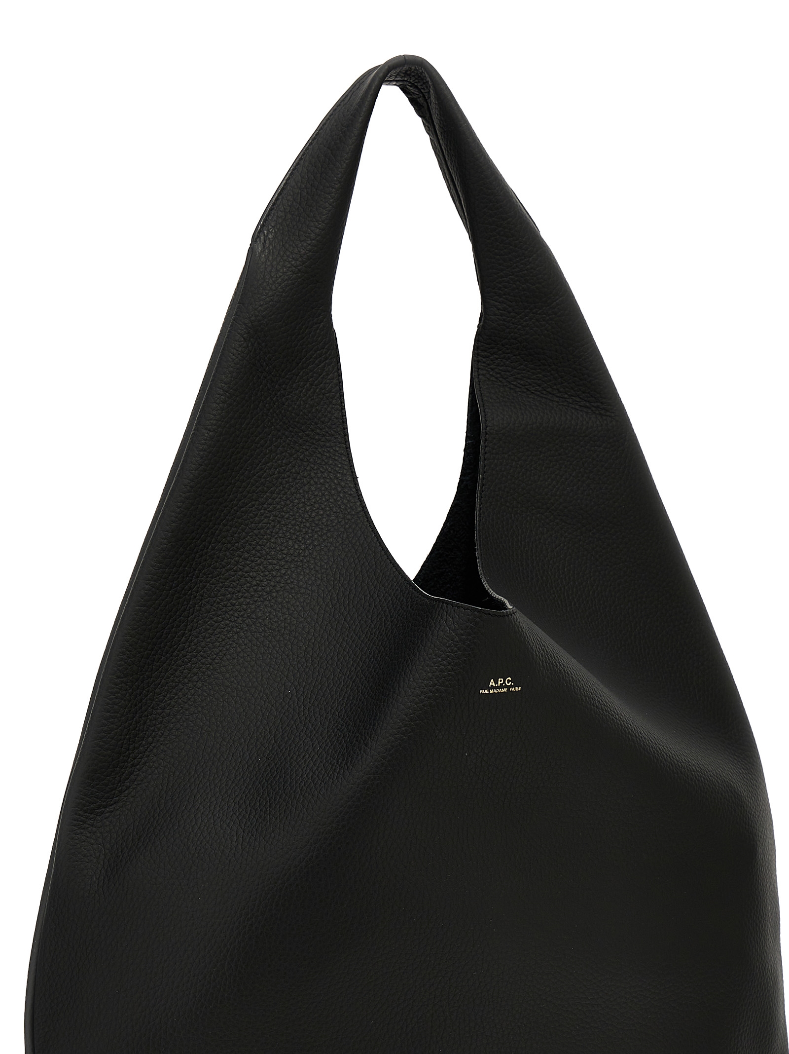 ‘Le Neige’ shoulder bag stitched from a single piece of leather, front embossed logo, single handle.