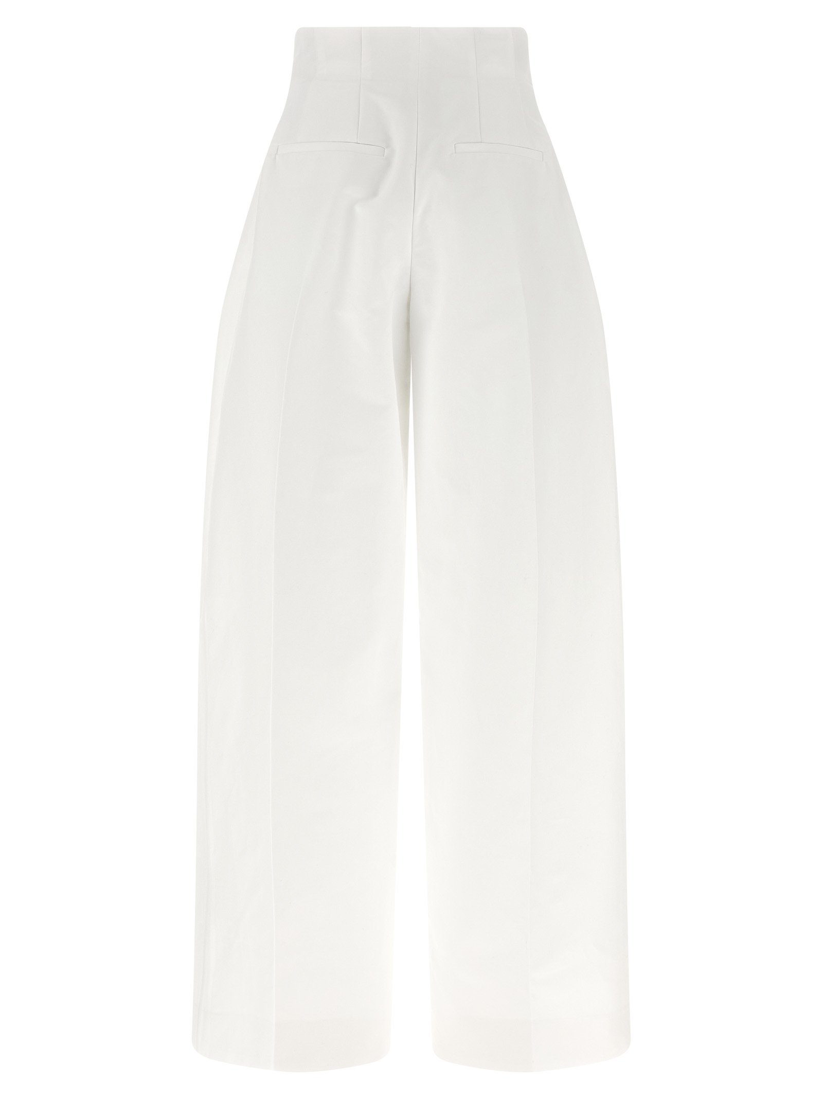 ‘Le Pantalon Souro’ heavy cotton trousers, high waist, extra wide leg, pins, ironed pleat, zip and front hook closure, pockets.