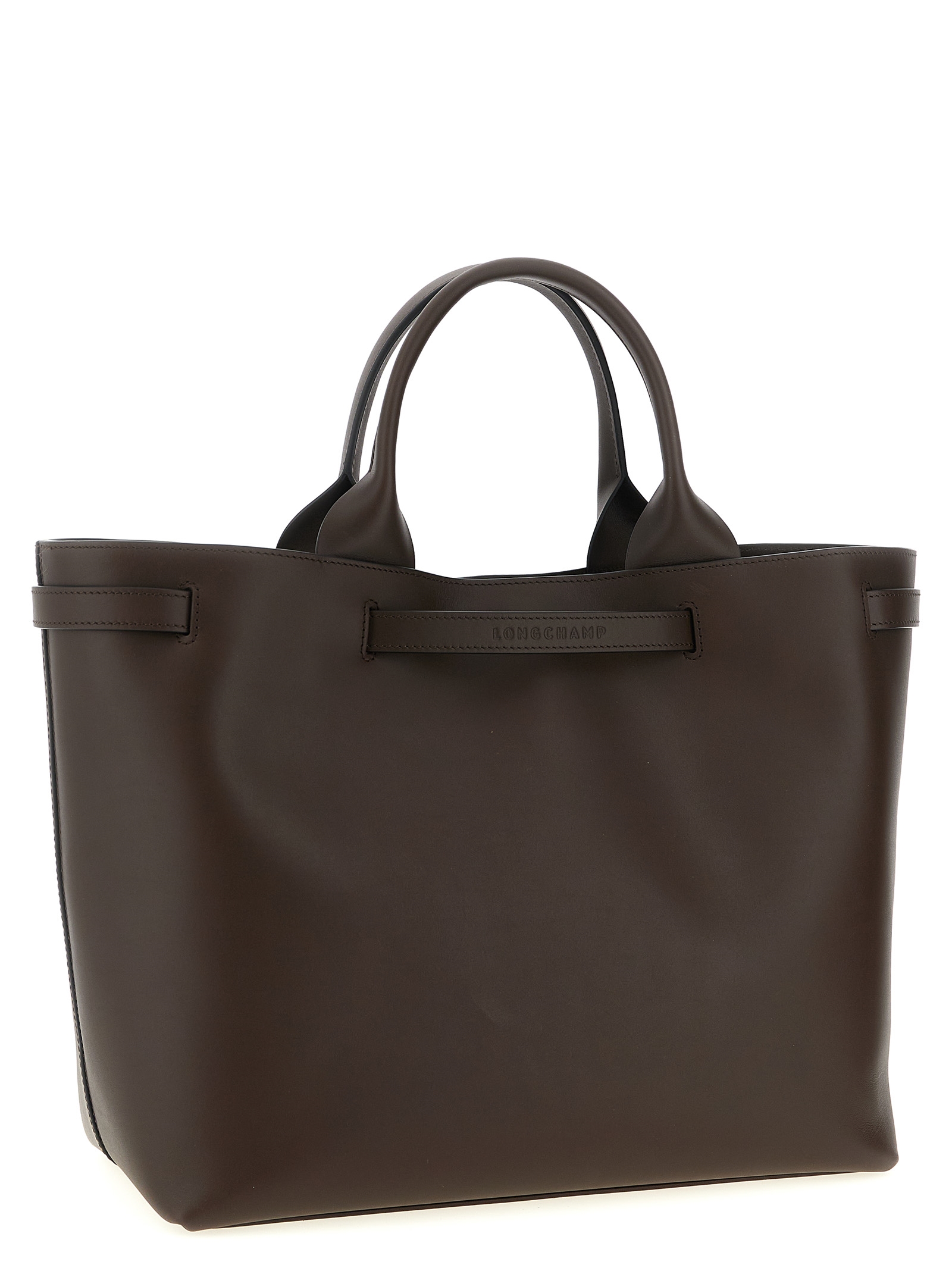 Le Roseau Smart’ leather shopping bag with double fixed handle, magnet closure, strap and metal buckle at the front.