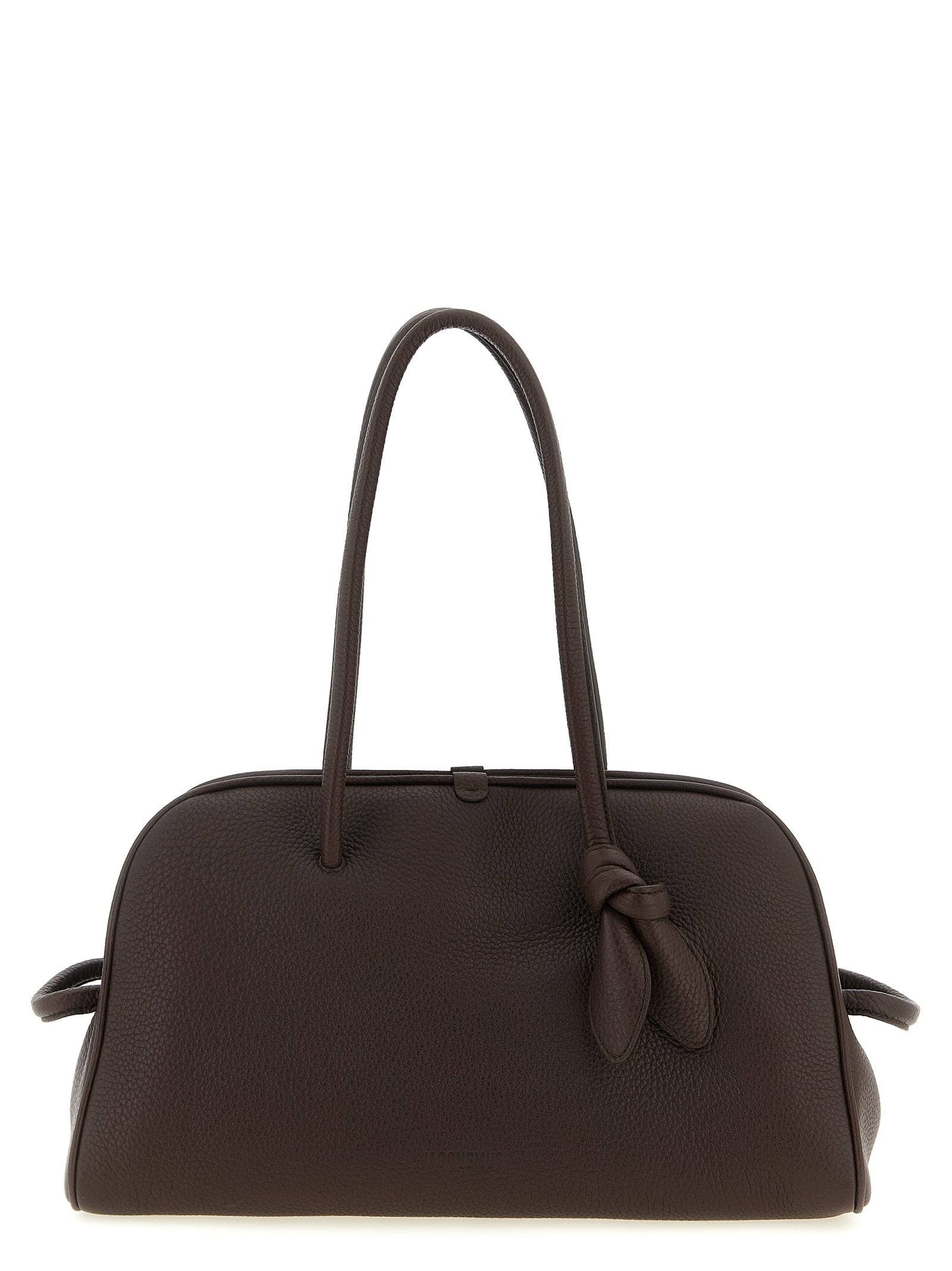 ‘Le Turismo’ hammered leather shoulder bag in bowling style with front embossed logo, double fixed handle with tone-on-tone bow detail, top zip closure.