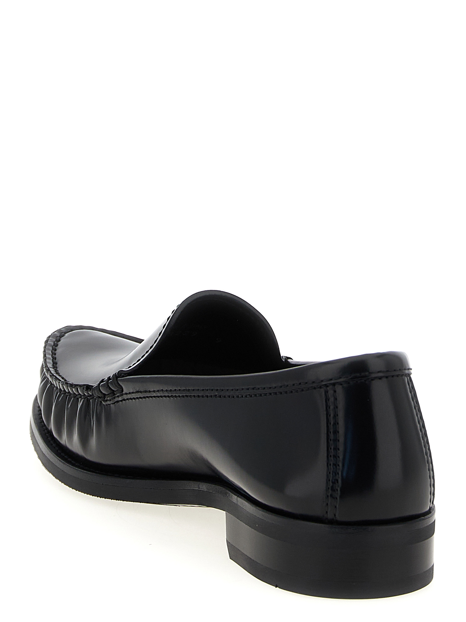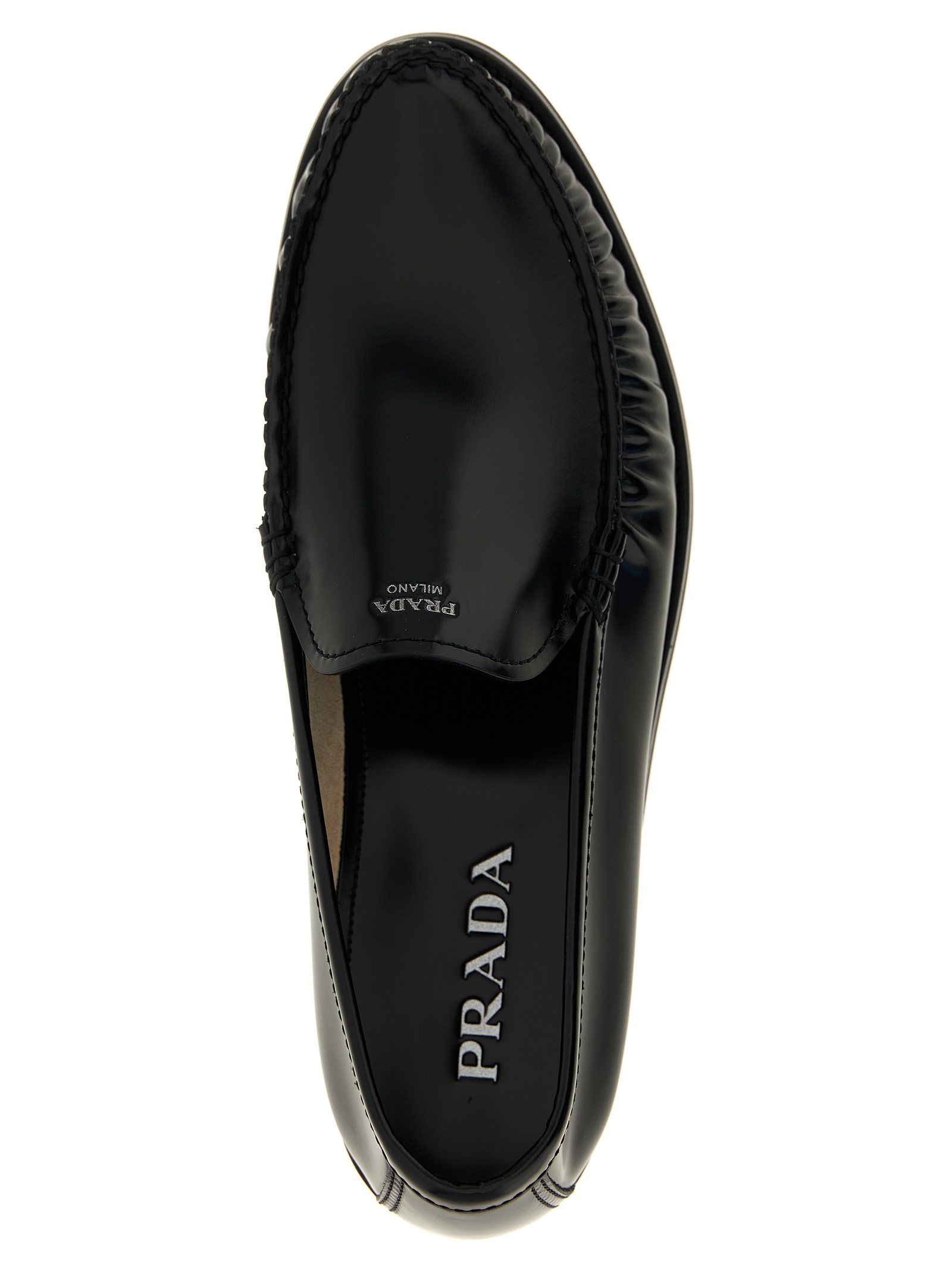 Brushed leather loafers with silk-screened front logo, stitching, leather insole and rubber sole.