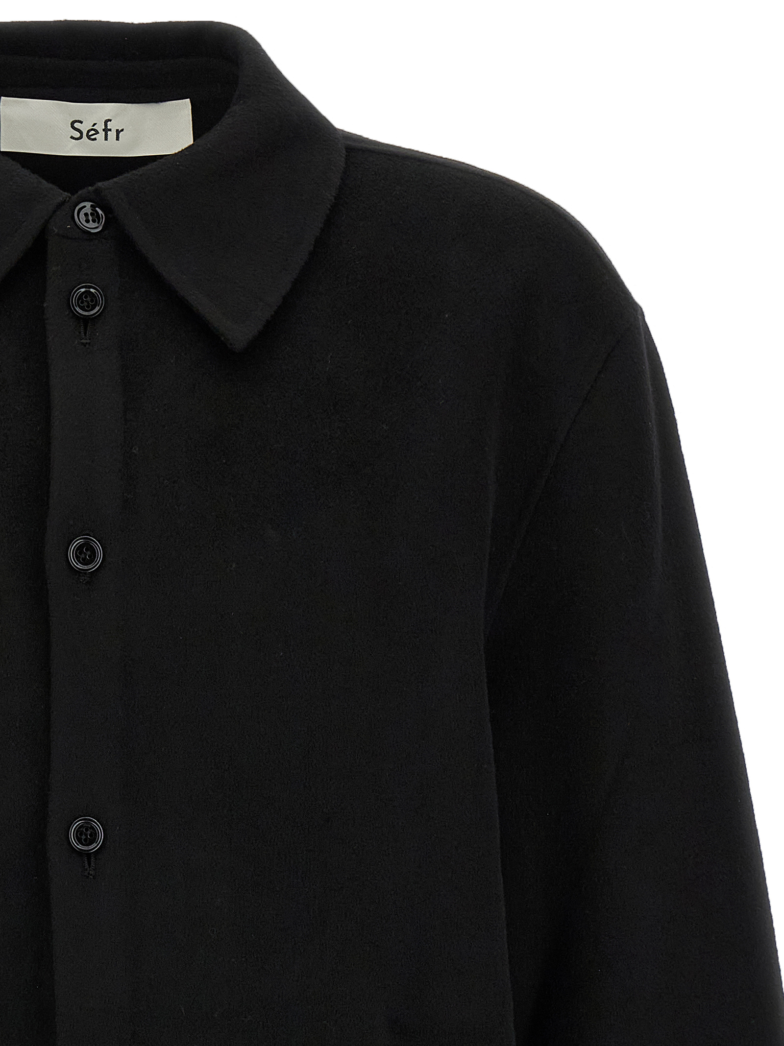 ‘Lenny’ shirt in double face virgin wool and cashmere fabric with front button closure, long cuffed sleeves and dropped shoulders.