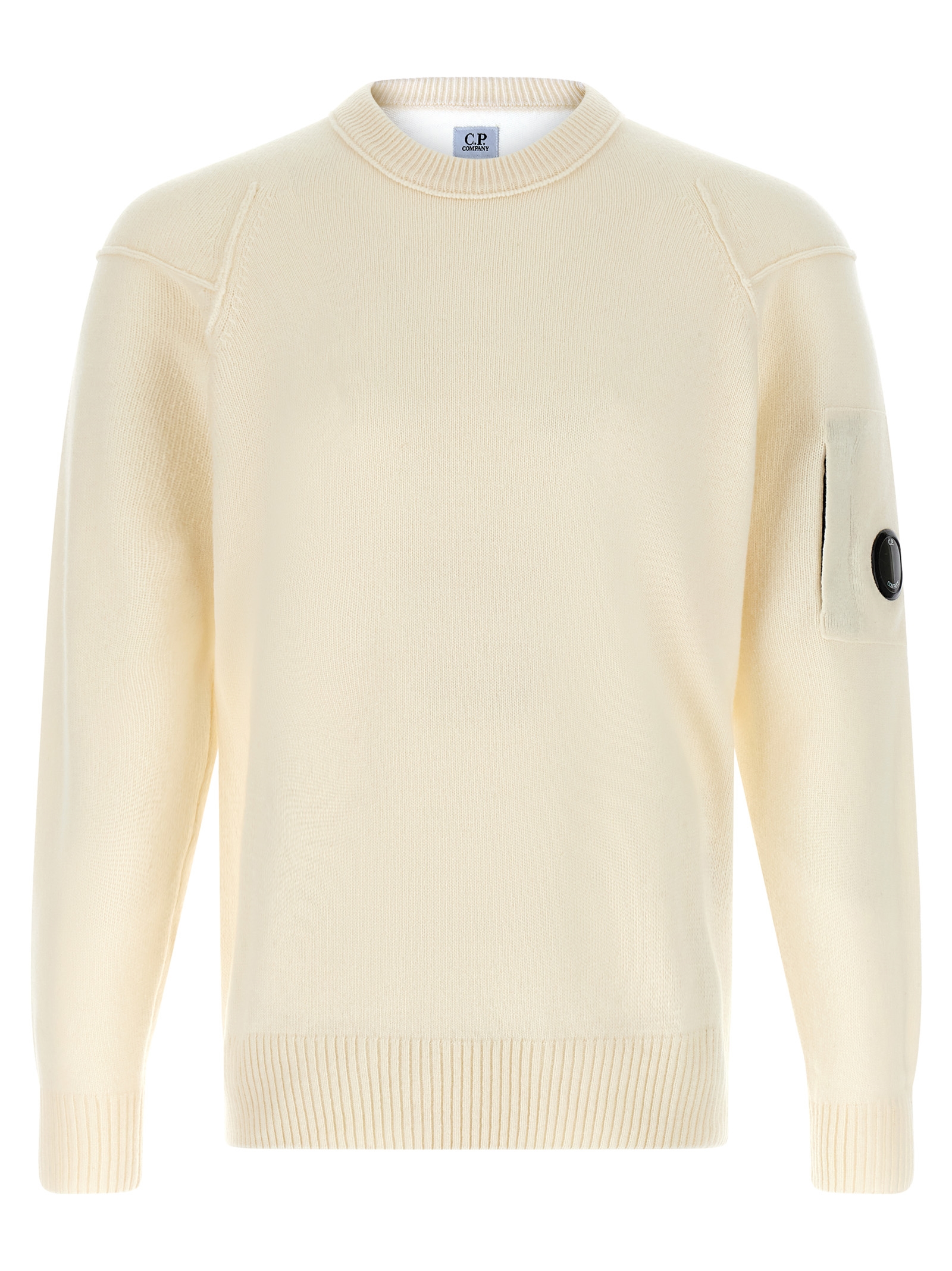 Wool sweater, with contrast stitching on the armholes, crew neck, long sleeves with cuffs and lens.