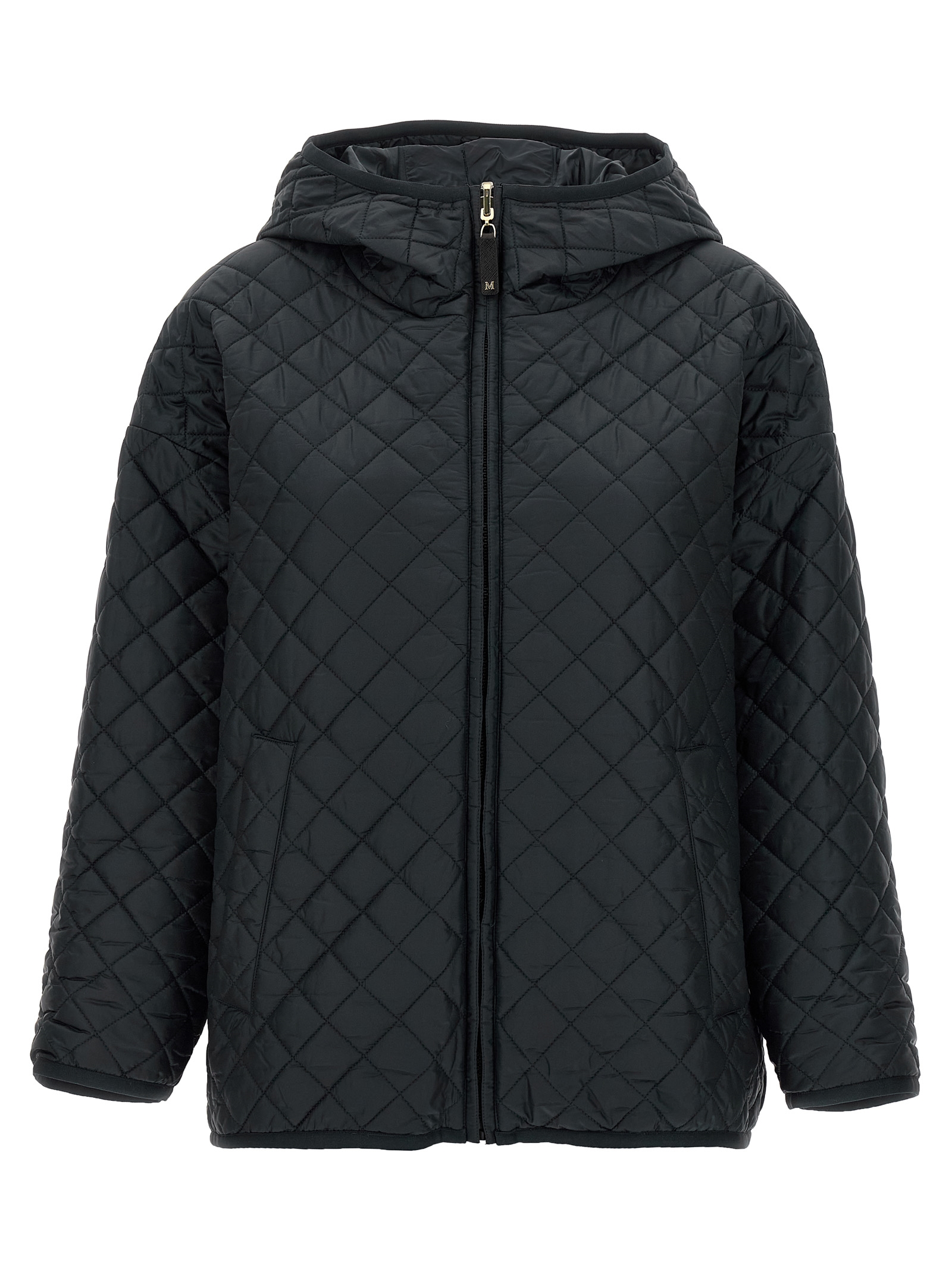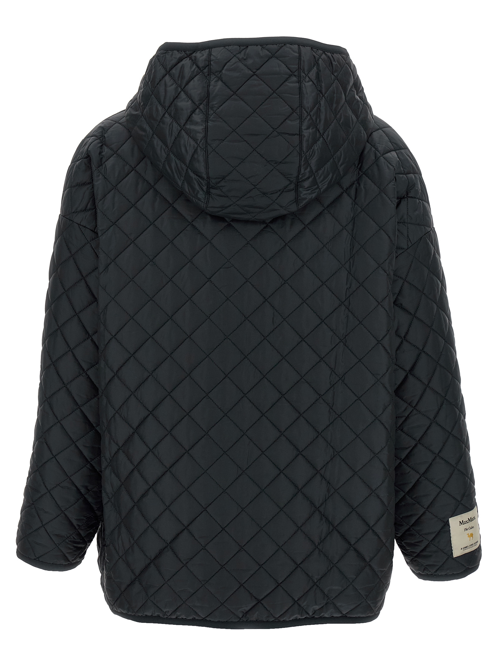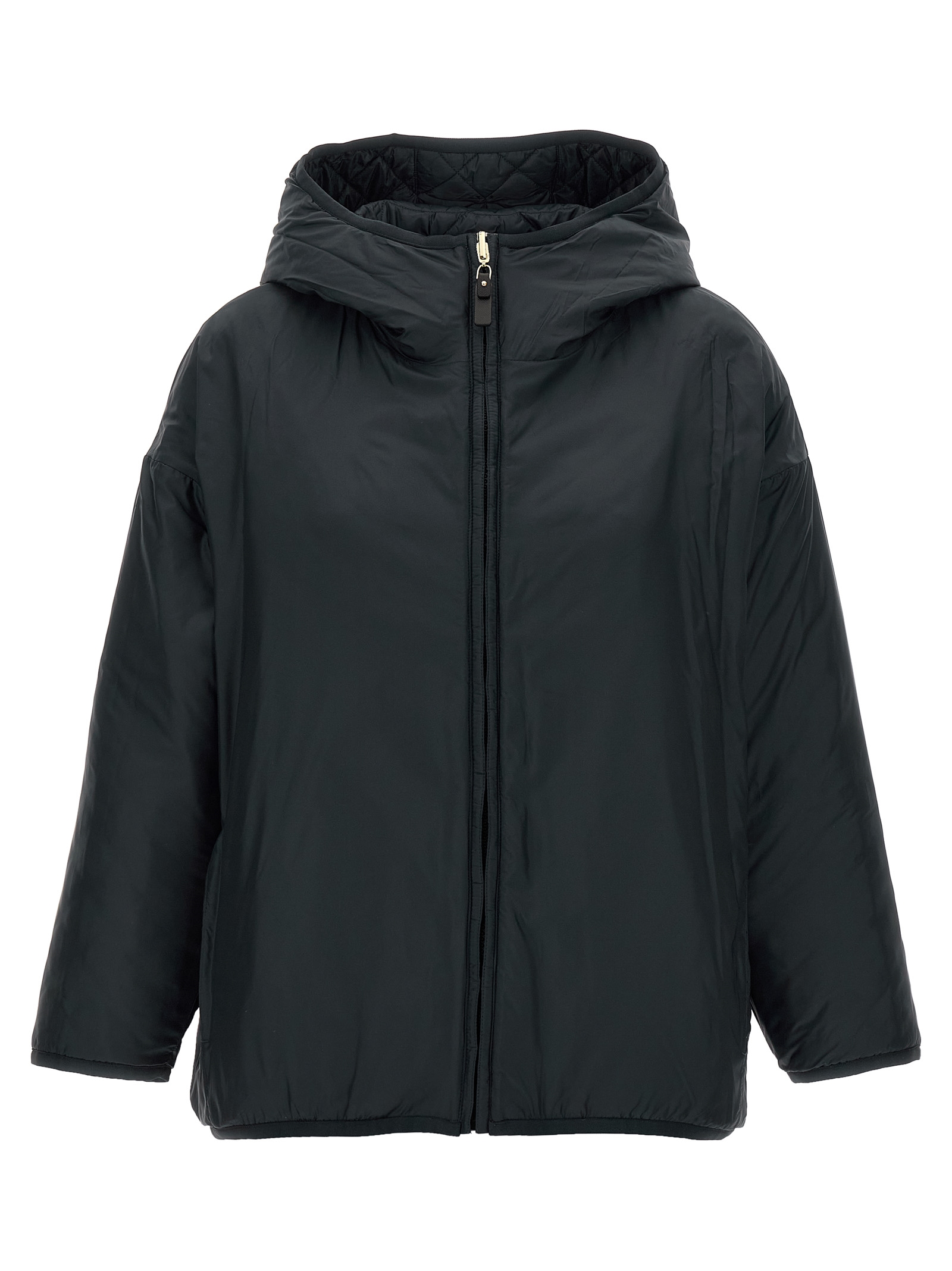 ‘Leo’ reversible jacket in waterproof canvas with Cameluxe quilted diamond-shaped on one side and smooth on the other, hood, front zip closure, pockets, long sleeves with dropped shoulders, slightly asymmetrical hem.