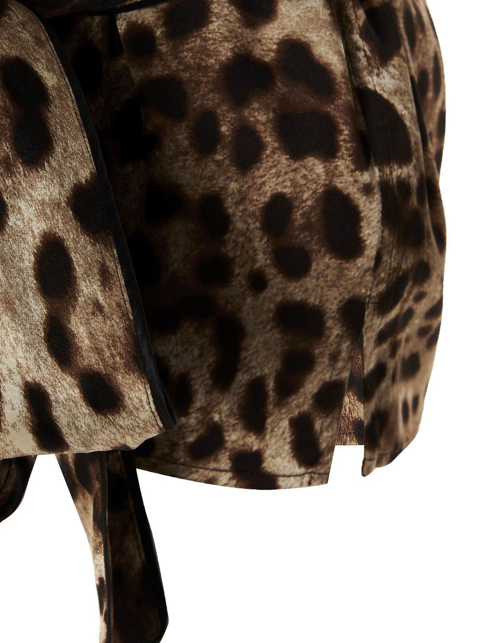 Silk shirt with leopard print, with button closure, belt at the waist, pocket, black piping and short sleeves.