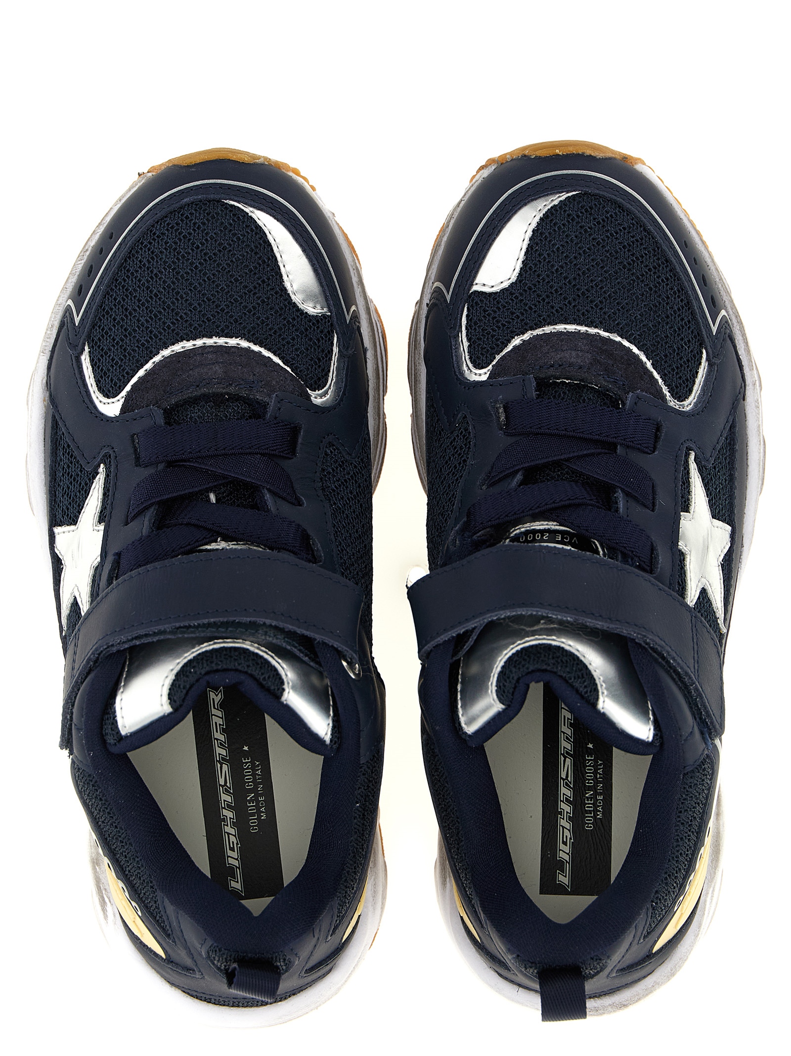‘Lightstar’ used-effect leather and mesh sneakers with velcro closure, chunky rubber sole.