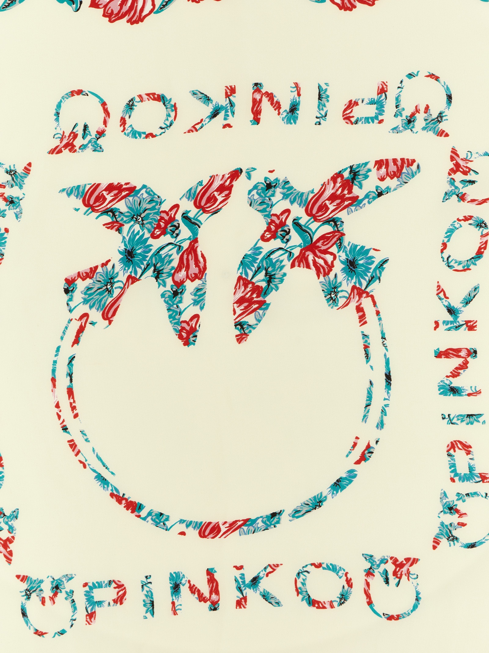 ‘Limbo’ scarf in viscose twill and silk with all-over ‘Logo Birds’ print.