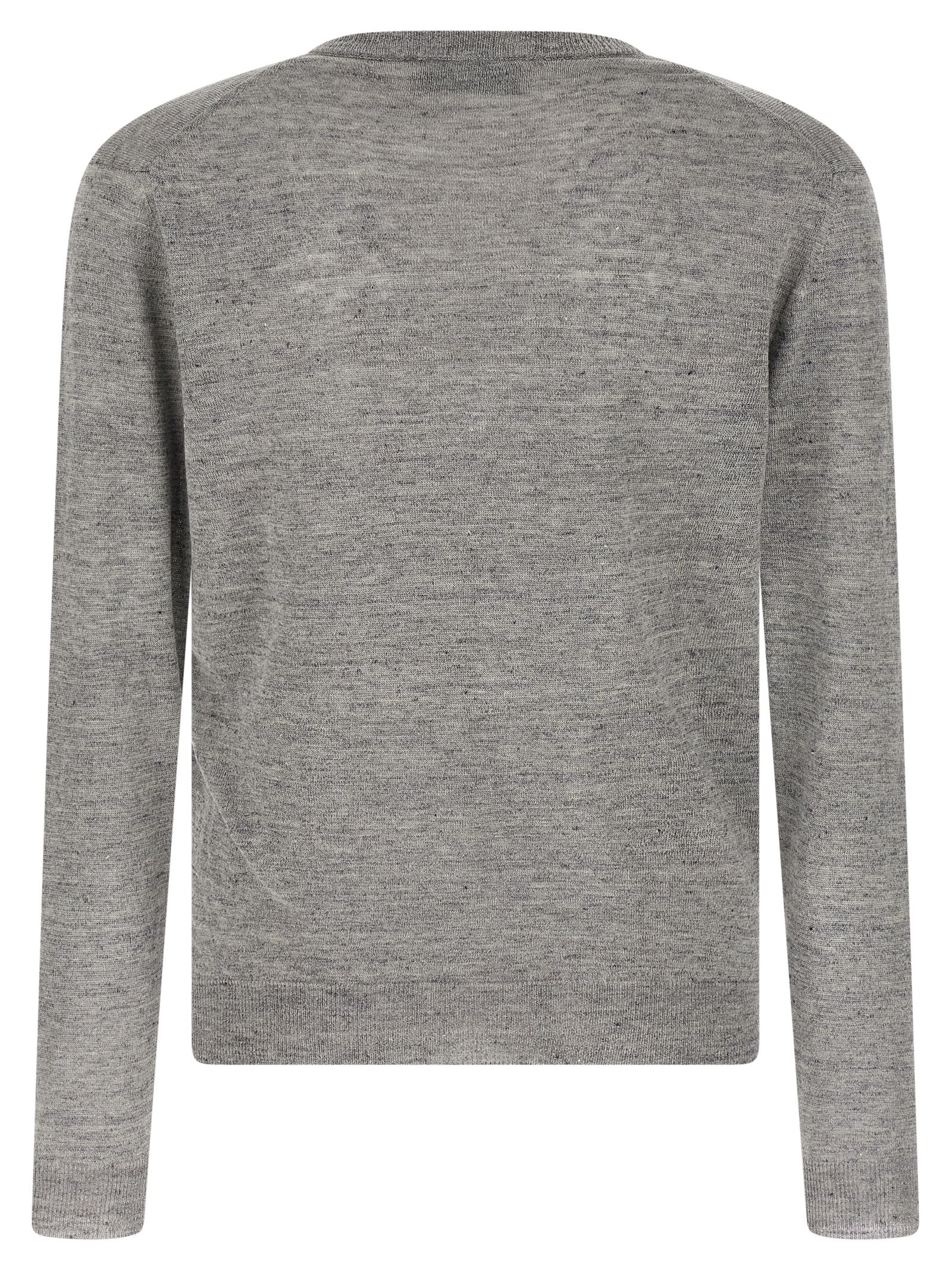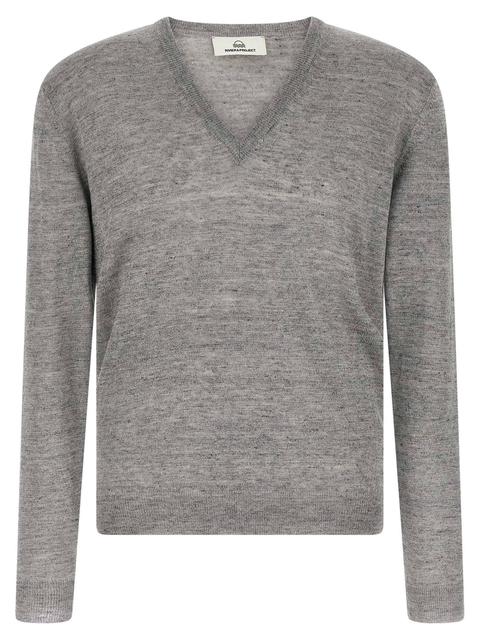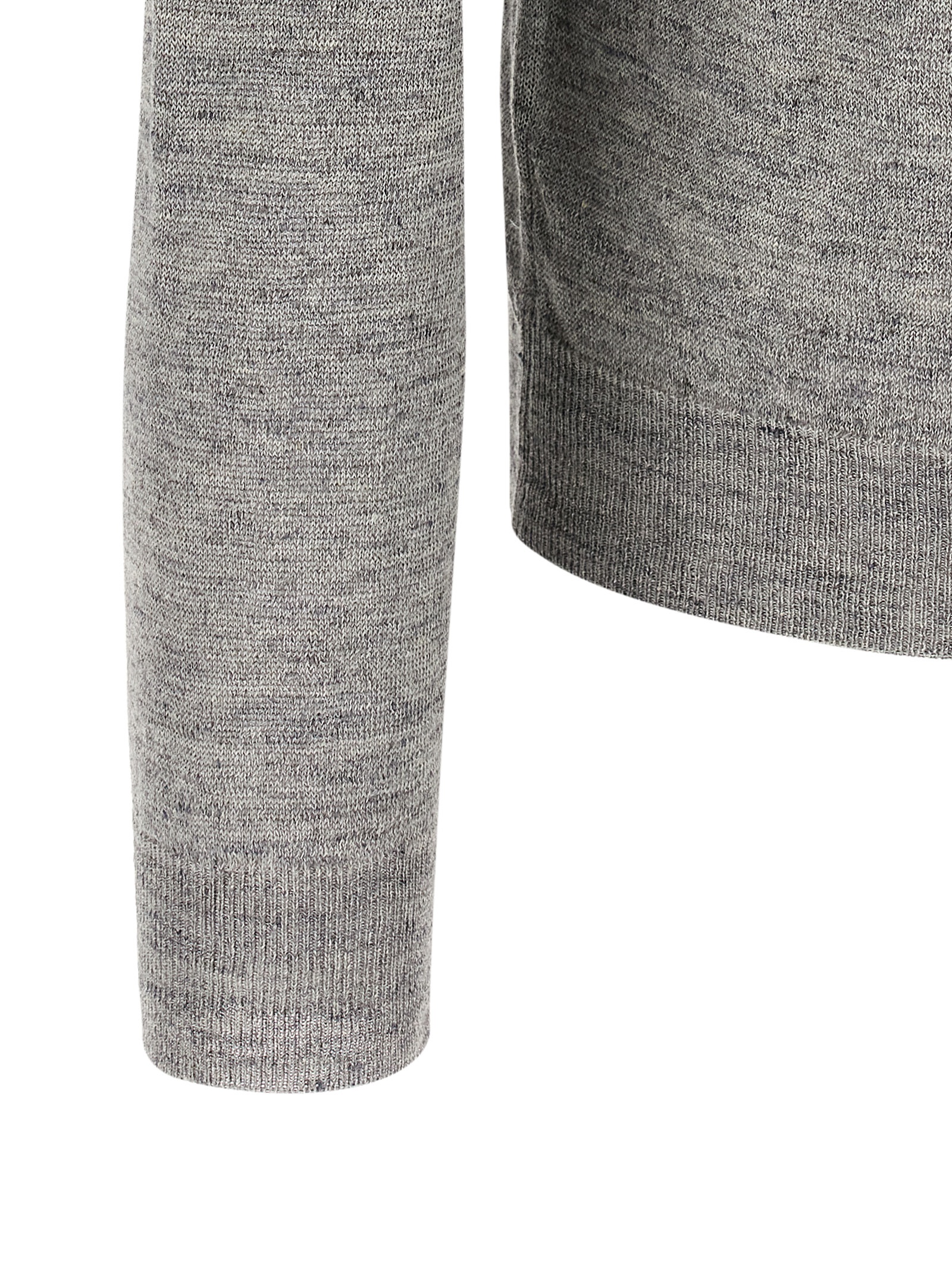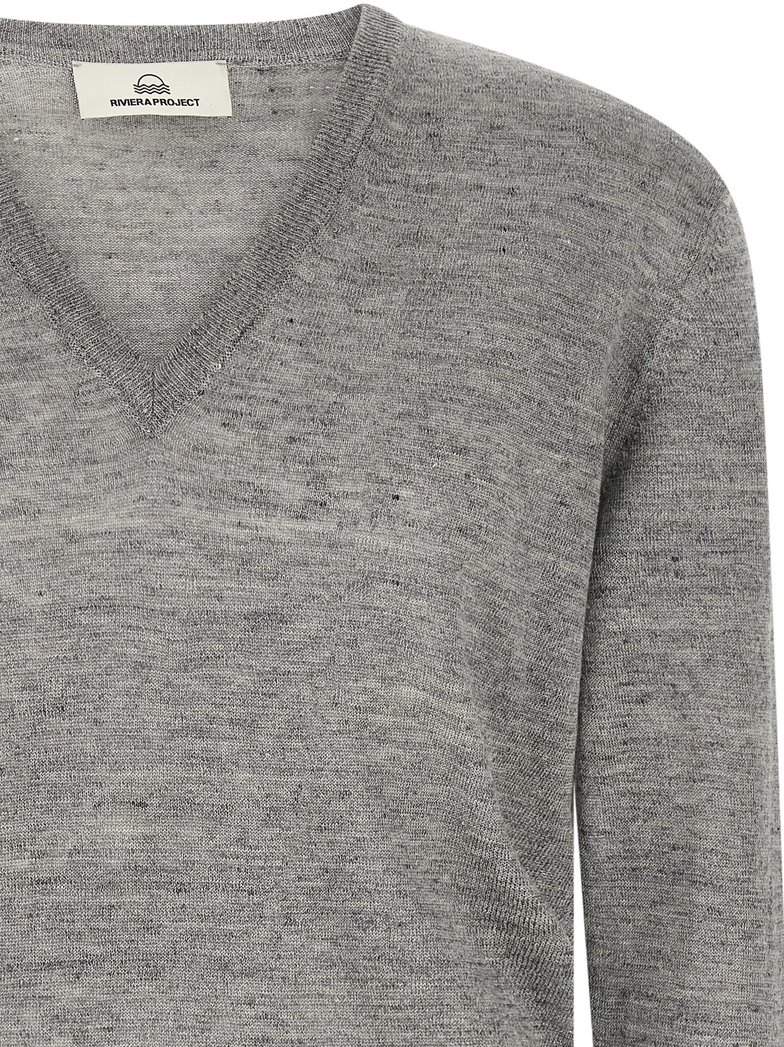 Melange sweater in linen and silk blend, V-neck, long cuffed sleeves, and band on the hem.