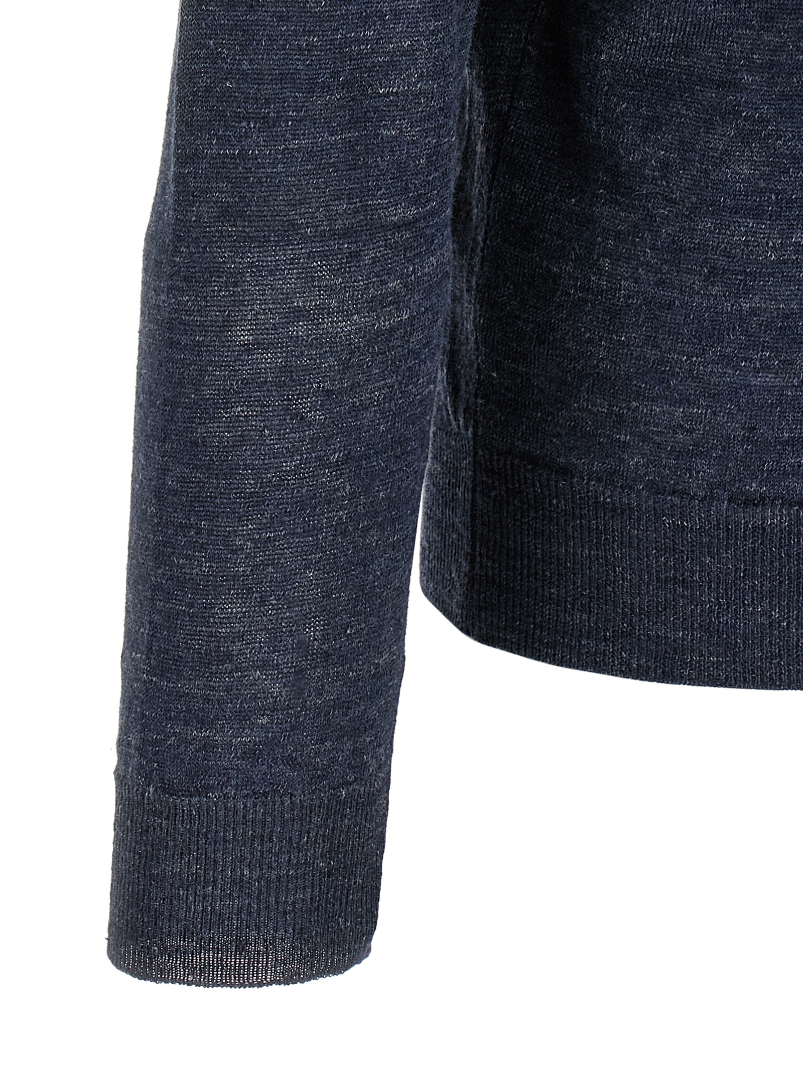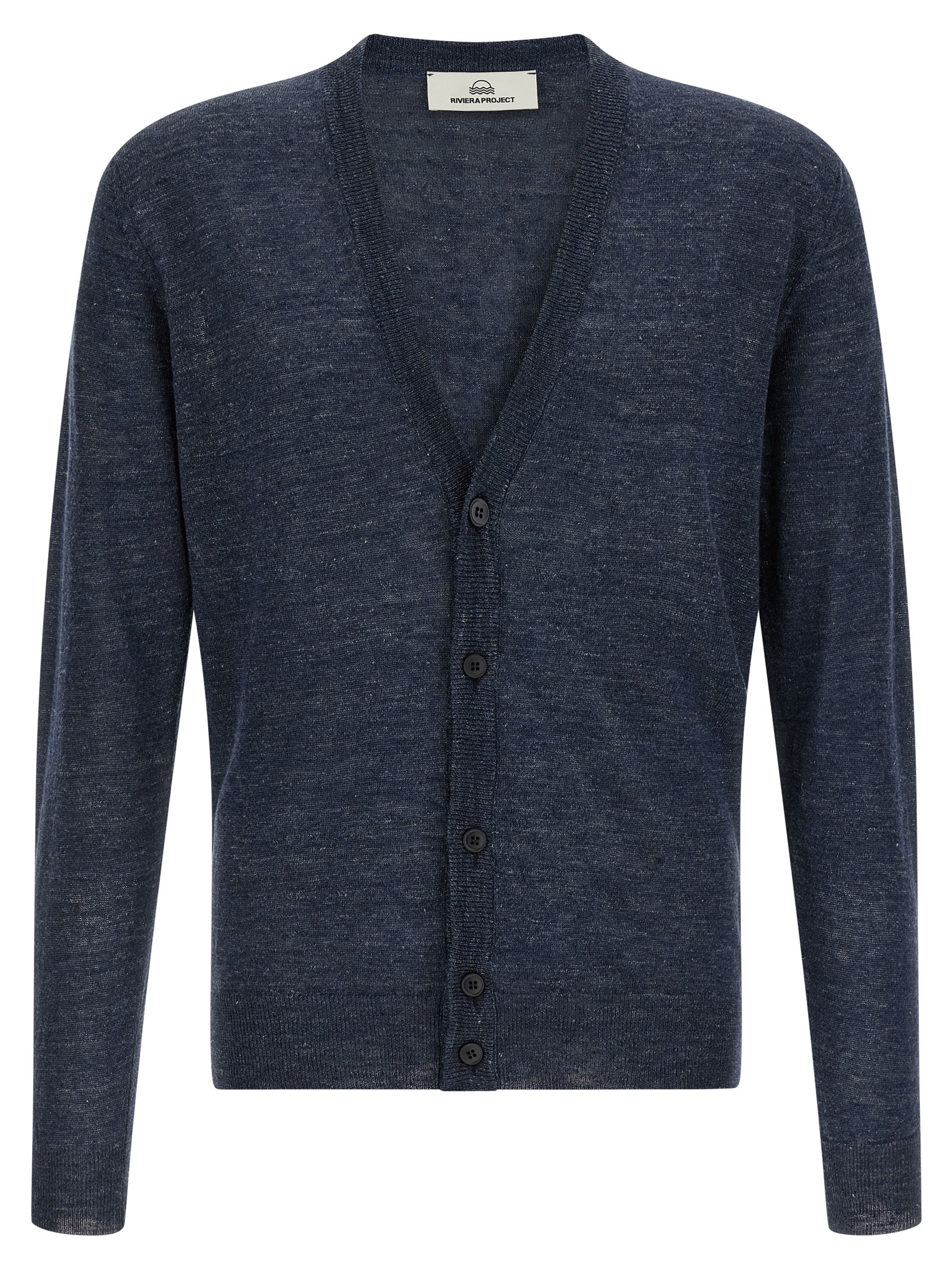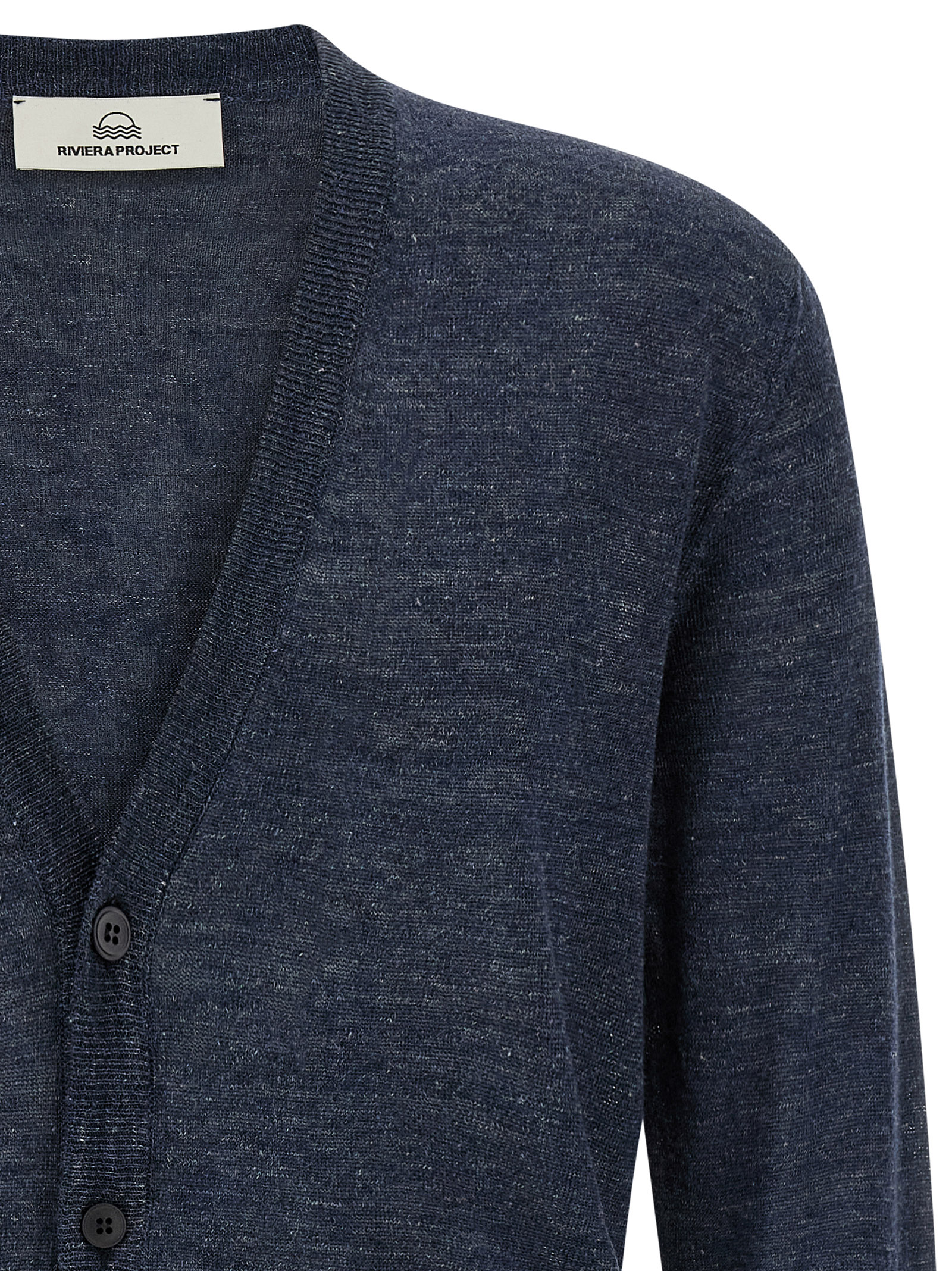 Melange cardigam in linen and silk blend, V-neck, front button closure, long cuffed sleeves, and headband on the hem.