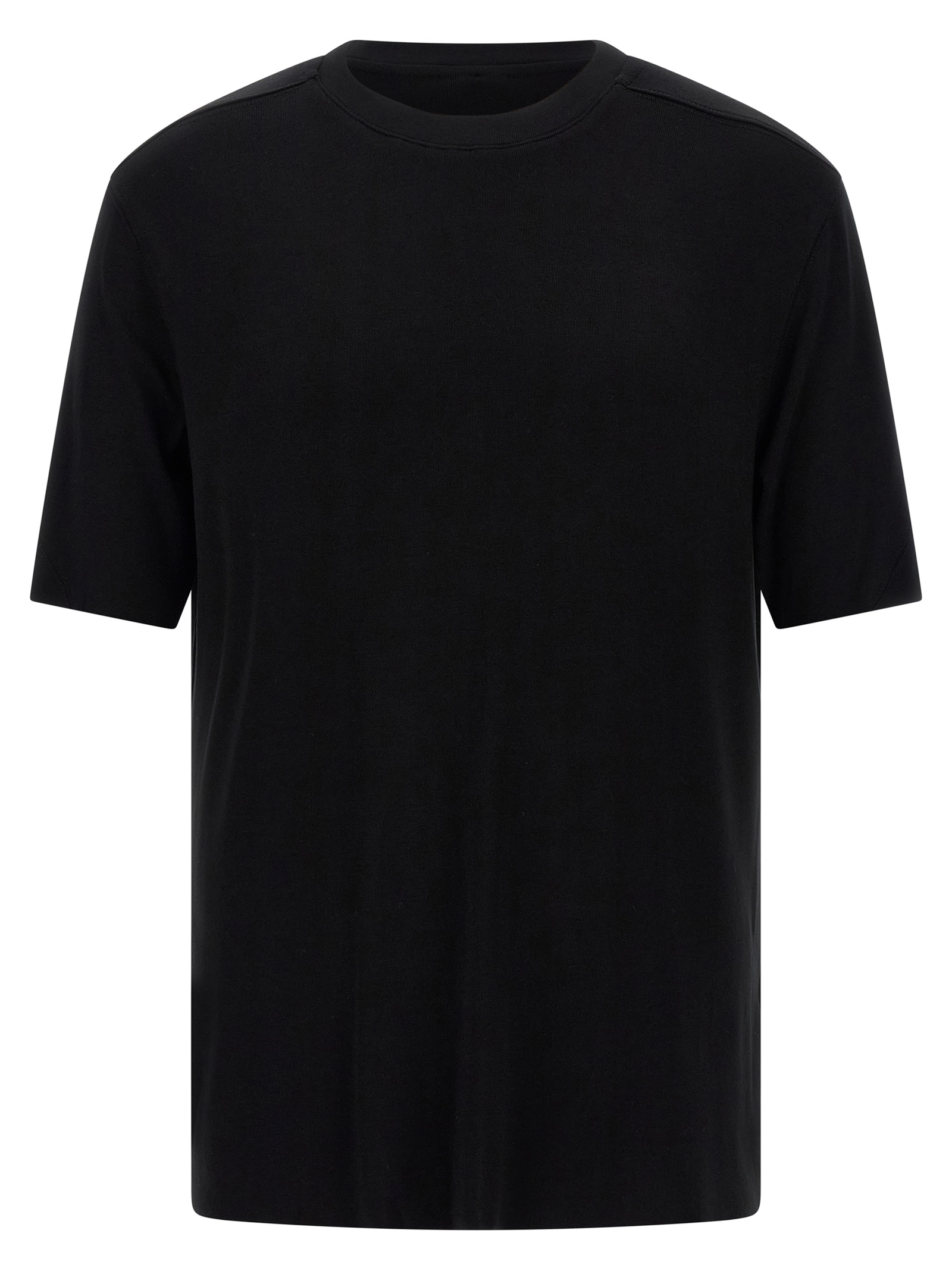 Jersey crewneck t-shirt with short sleeves, raw cut on the hem.
