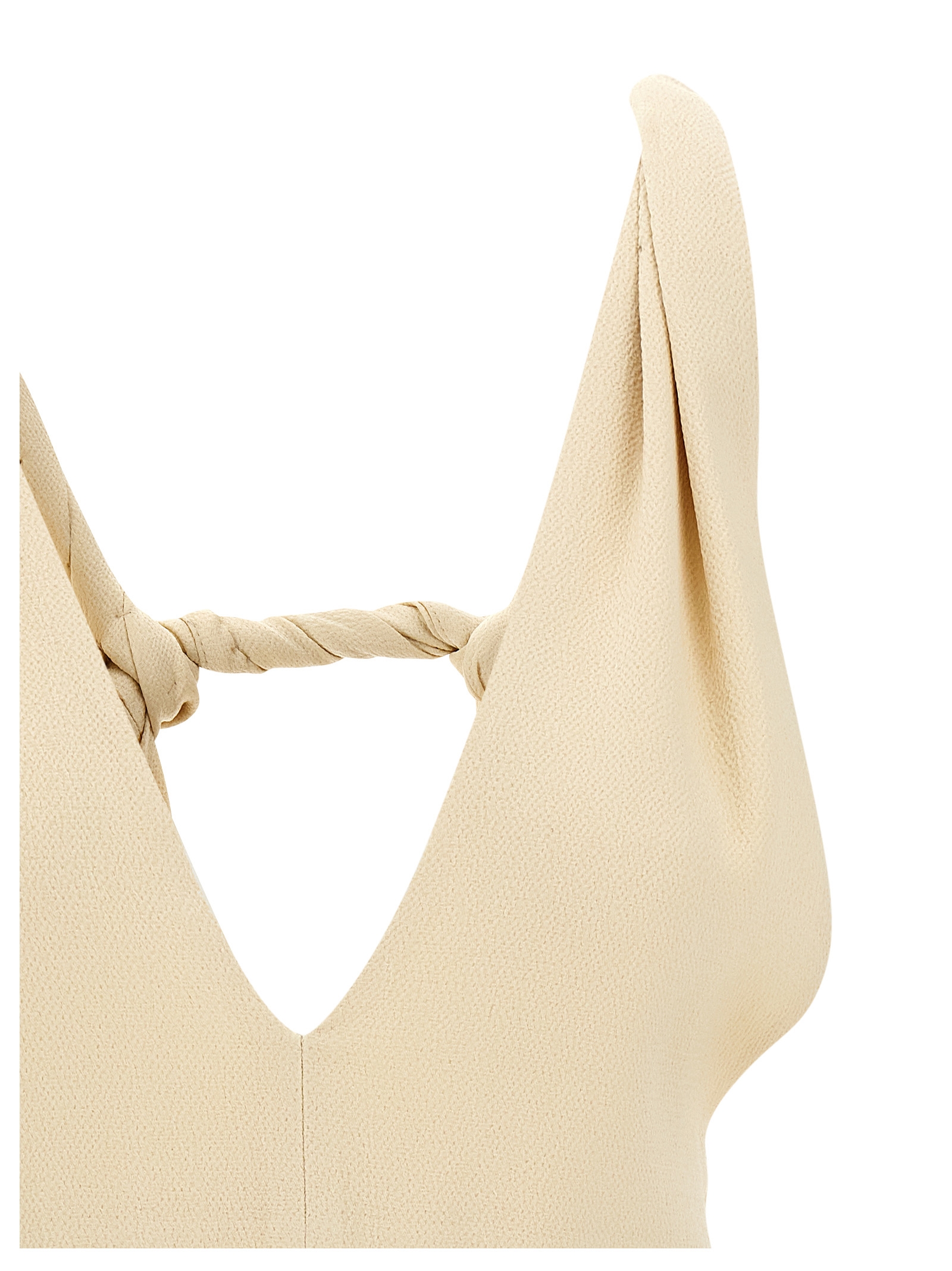 ‘Livia’ viscose top with V-neck at the front and back, twisted shoulder straps, back bow closure.
