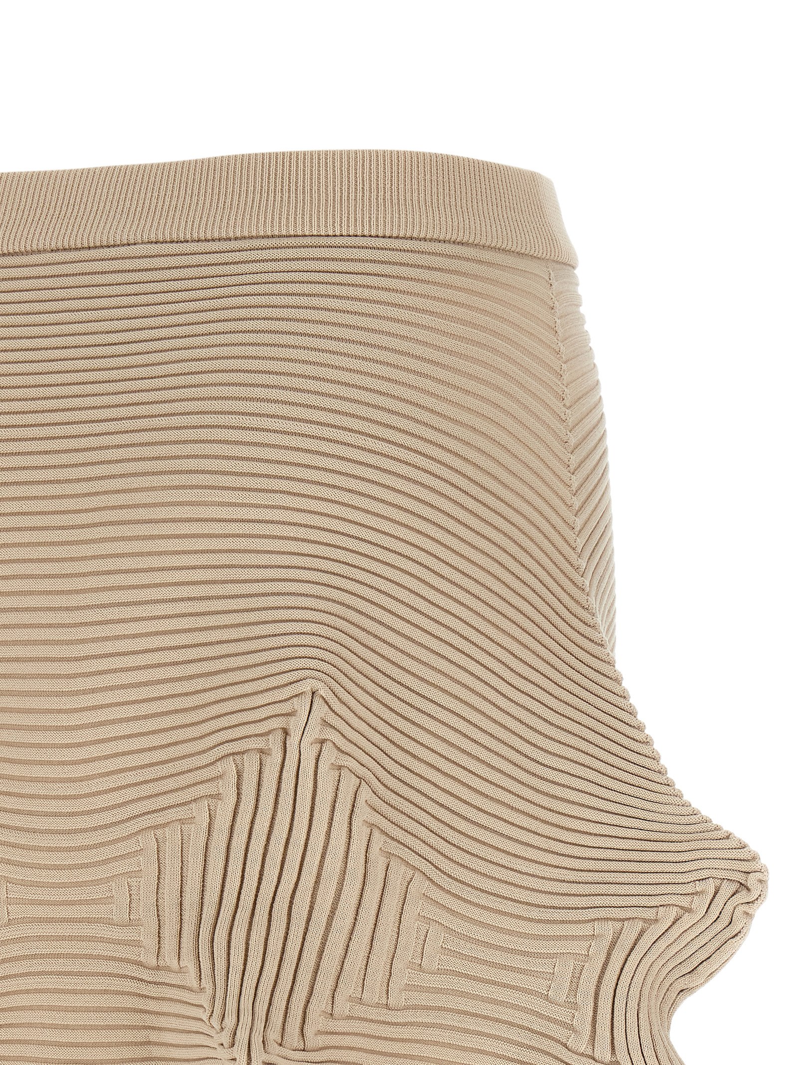 ‘Linkage’ knitted skirt with ribbed elastic weave structure, wide model with elastic waistband.