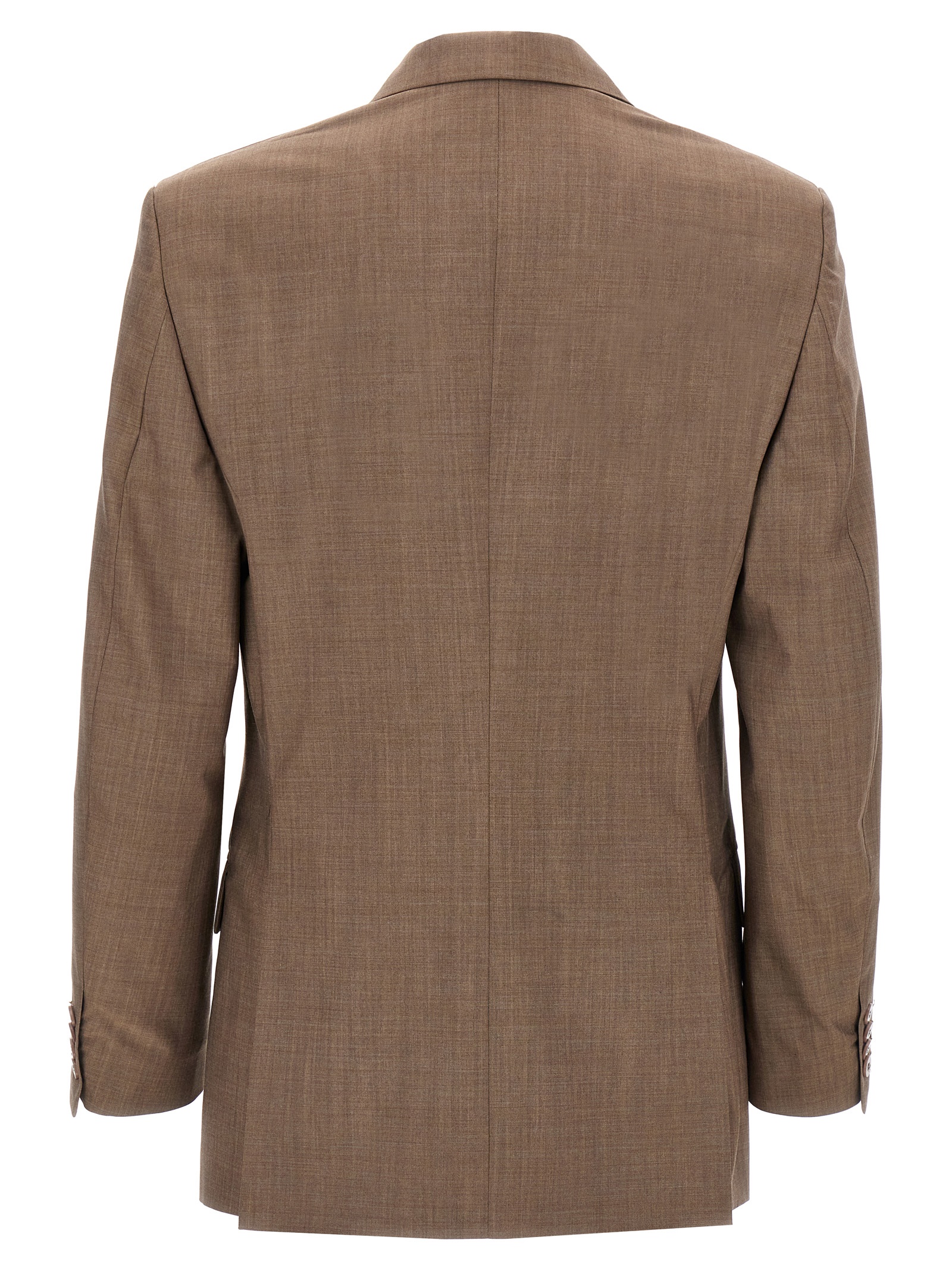 ‘Locarno’ single-breasted wool blazer with front button closure, mirror lapels, flap pockets, pocket with side knot detail, long sleeves, padded shoulders, back vents.