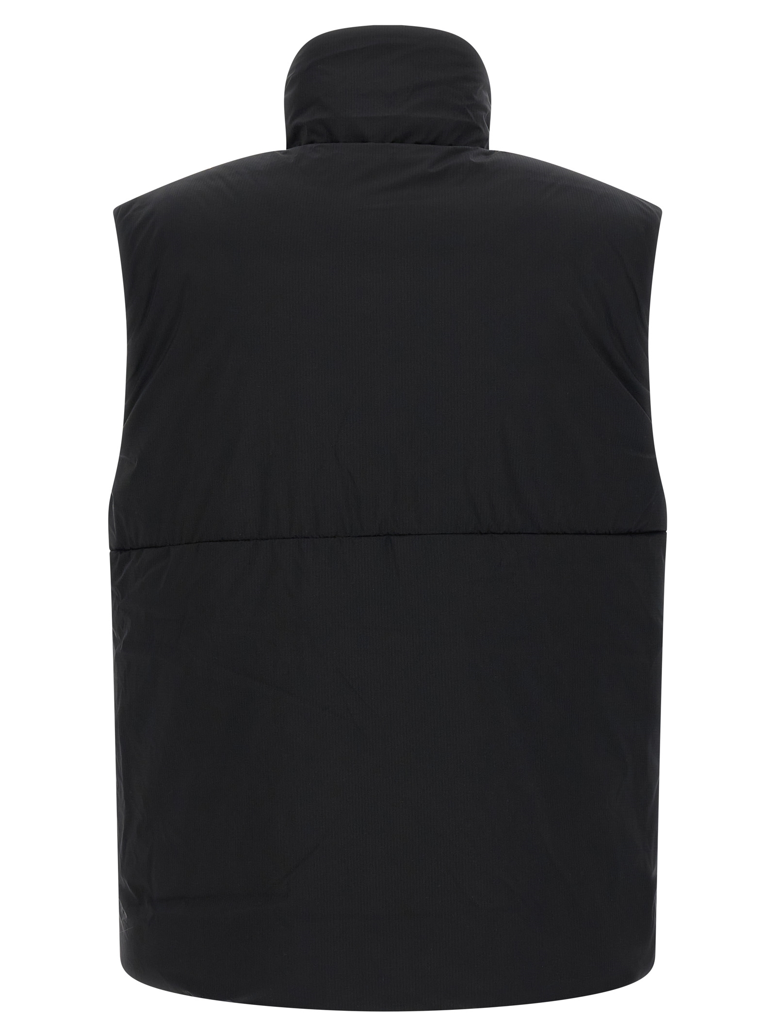 ‘Lodge’ water-repellent ripstop vest with quilted matte finish and slightly goose feather padding, high neck, logo patch and front zip closure, pockets, drawstring on the hem.