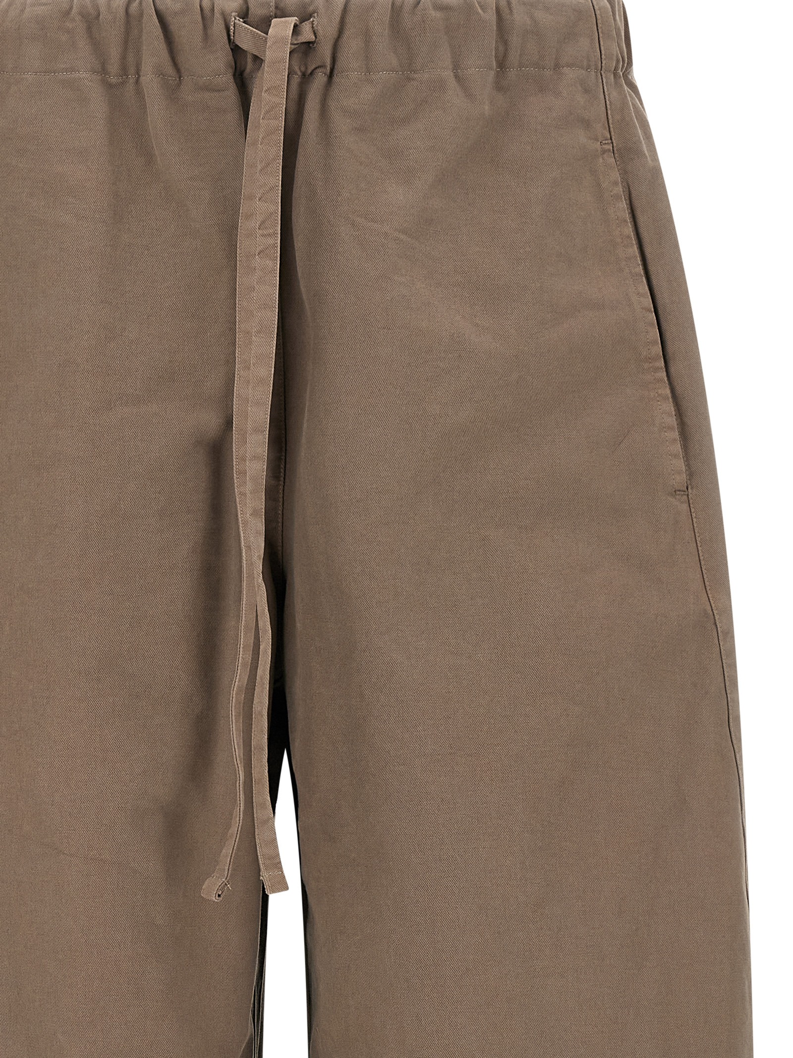 310 g/m² ‘Loft’ cotton pants, loose barrel leg, drawstring elastic waistband, pockets.