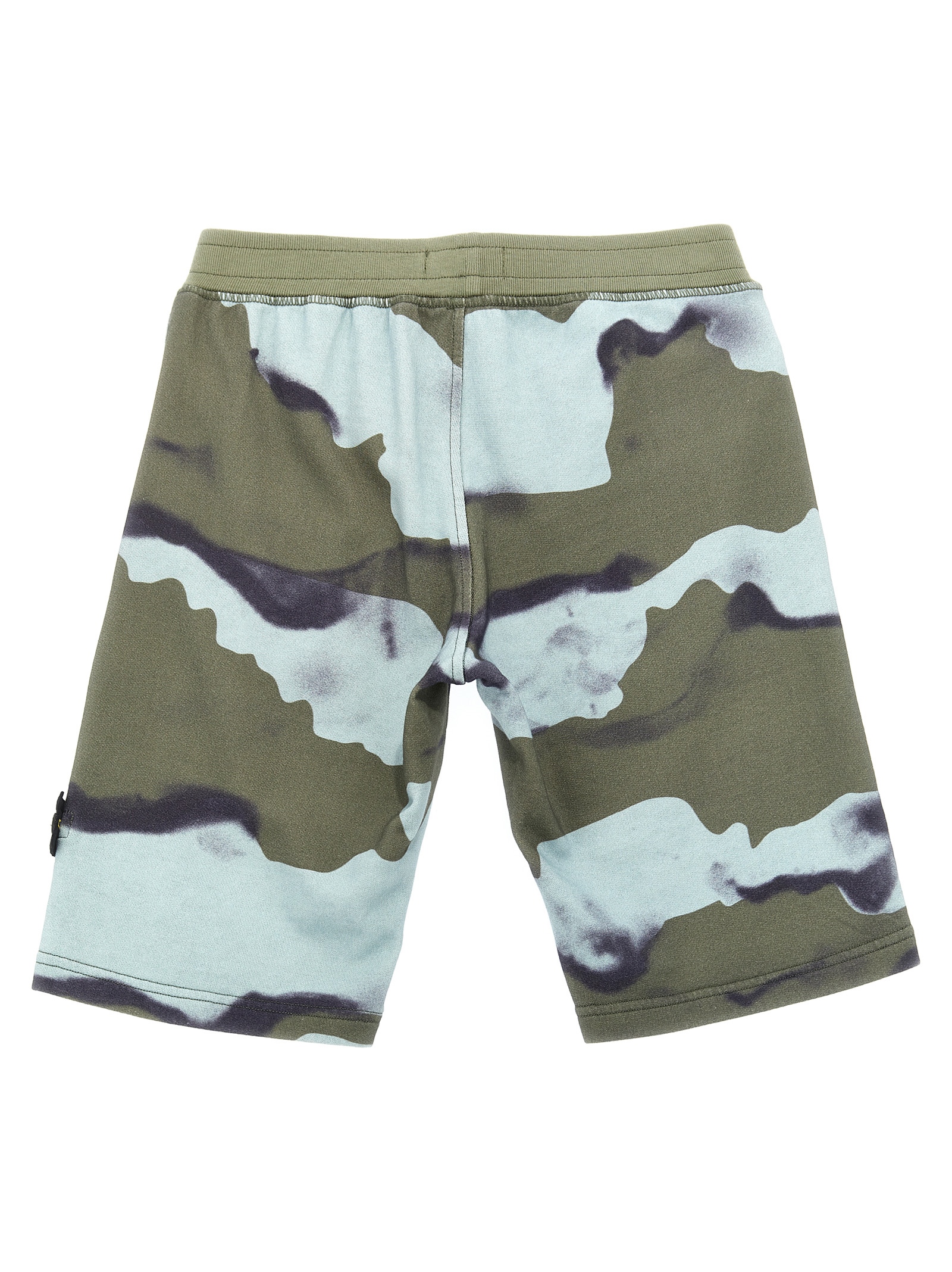 Patterned gauze cotton bermuda shorts, side logo badge, adjustable drawstring elastic waistband, pockets.