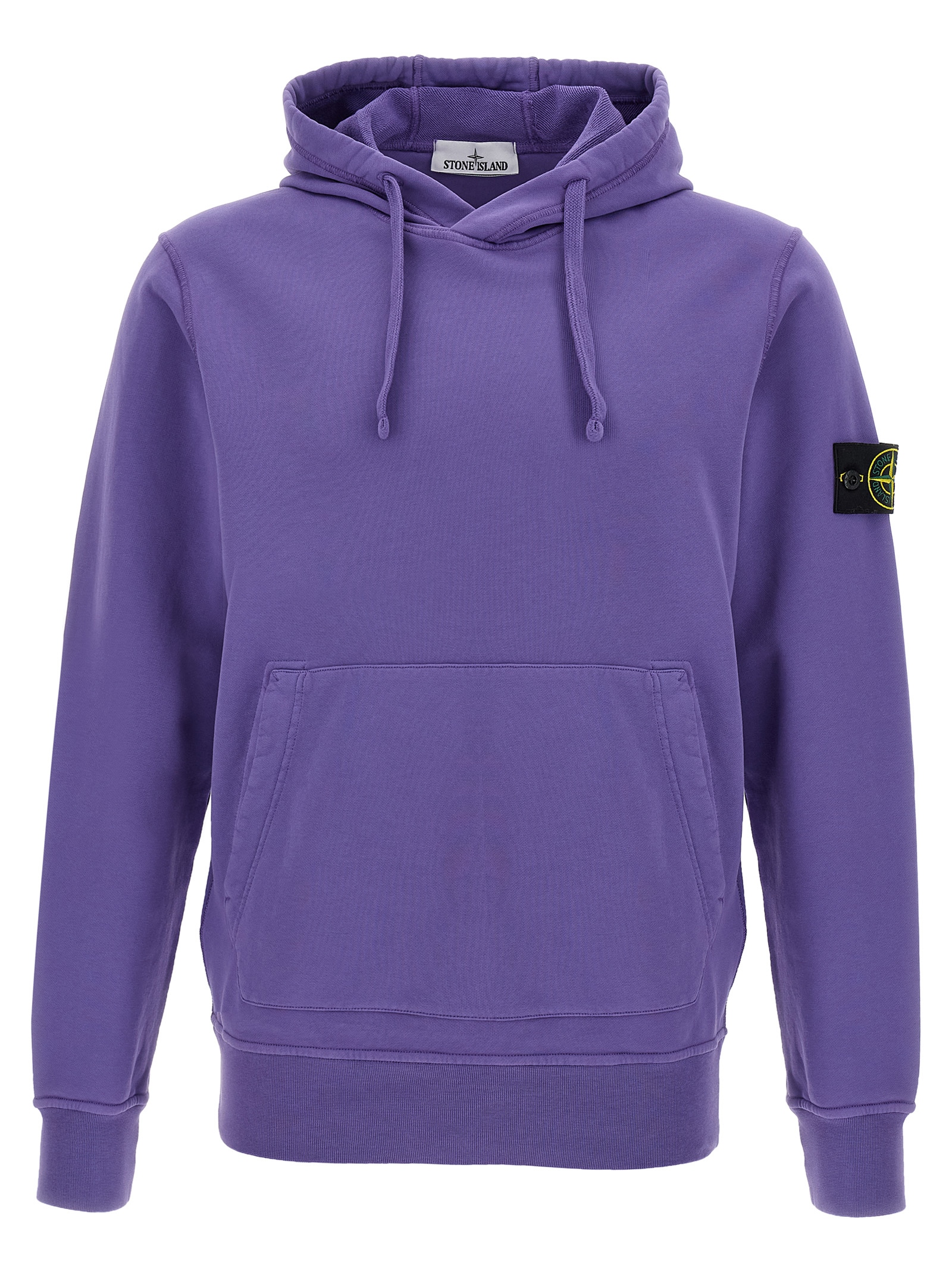 Fleece cotton hoodie with ribbed cotton side insert, kangaroo pocket, long cuffed sleeves, dropped shoulders and logo badge.