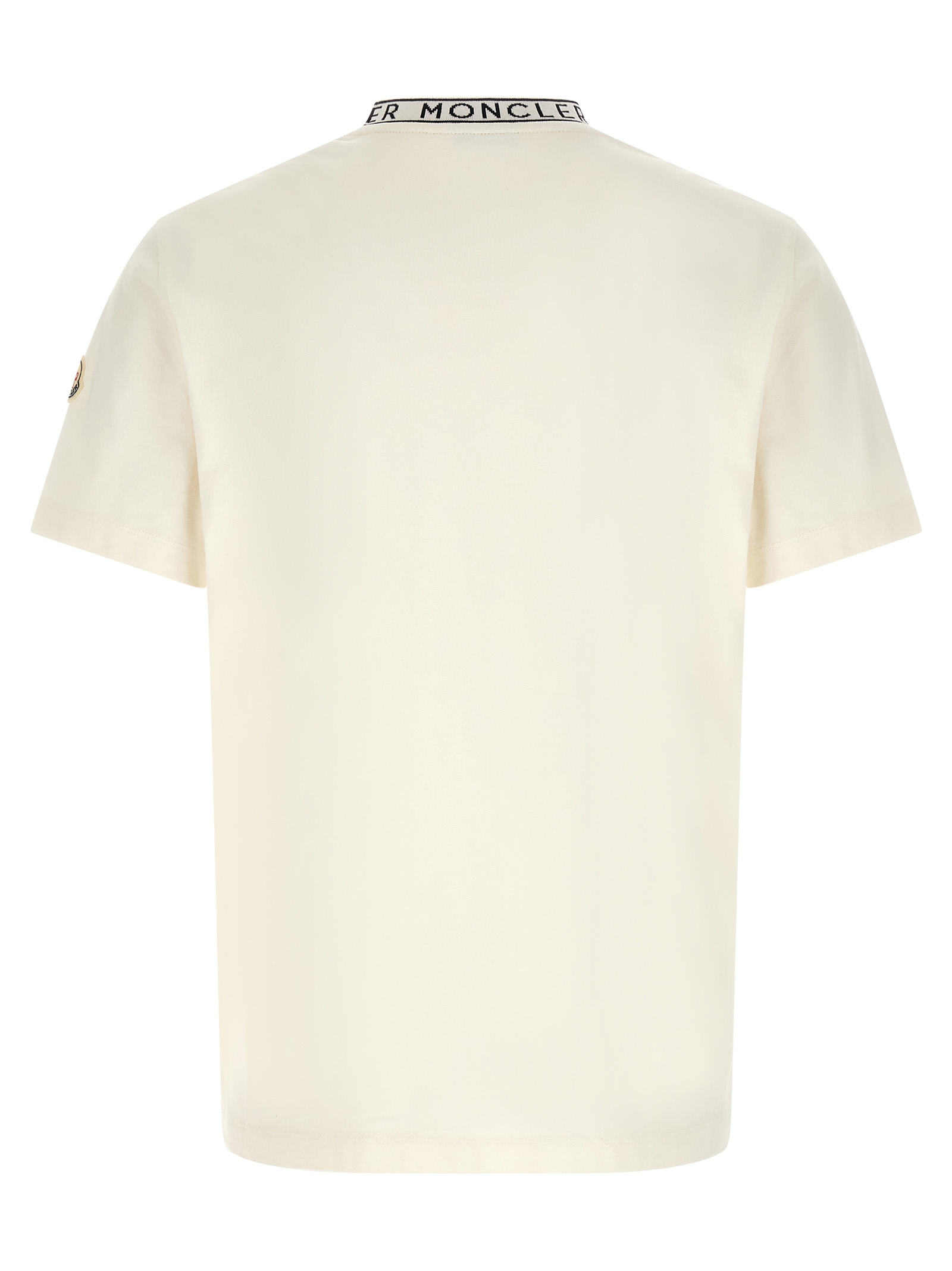 Cotton jersey crewneck t-shirt with jacquard logo and short sleeves with felt logo patch.