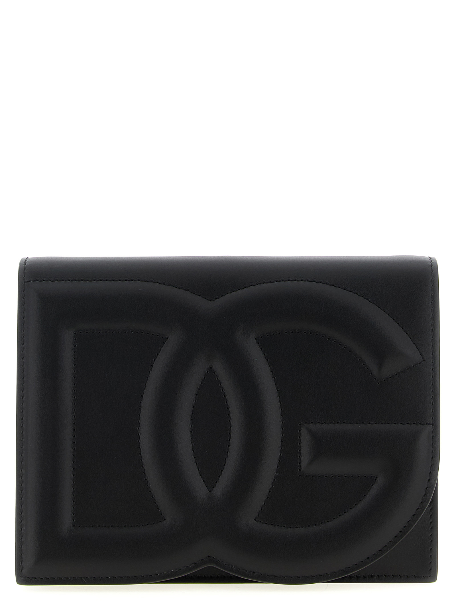 Calf leather crossbody bag with 3D quilted DG logo, adjustable and removable shoulder strap, flap closure with concealed magnet, alcantara lining, zip pocket and strap and snap button compartment.