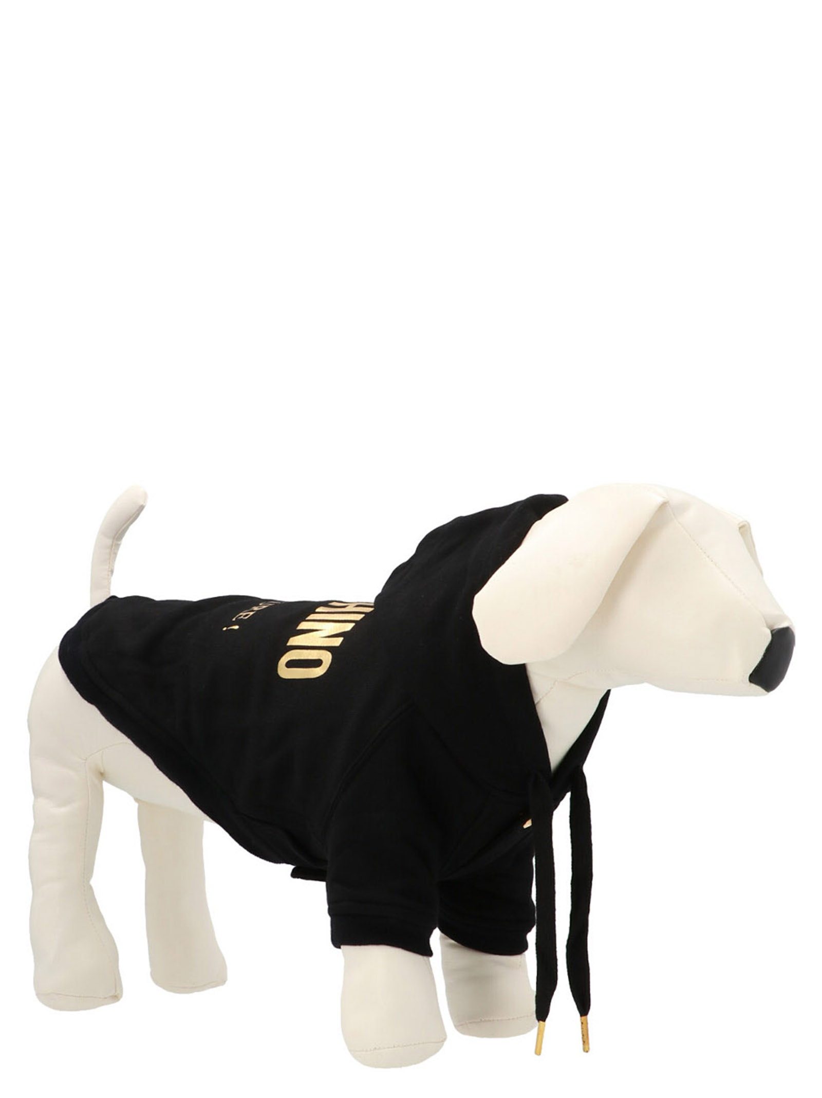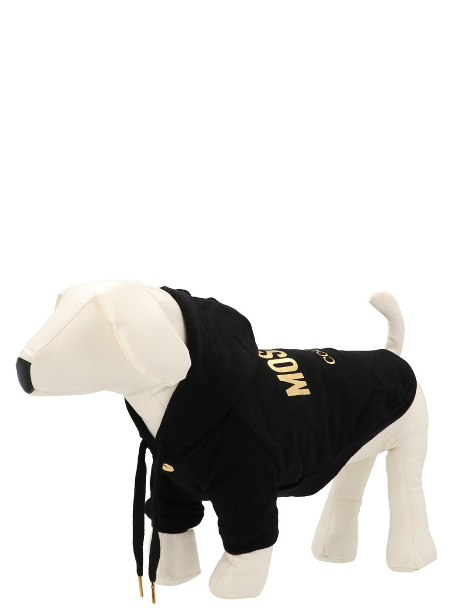 ‘Moschino’ logo dog sweatshirt with snap buttons and a hood.