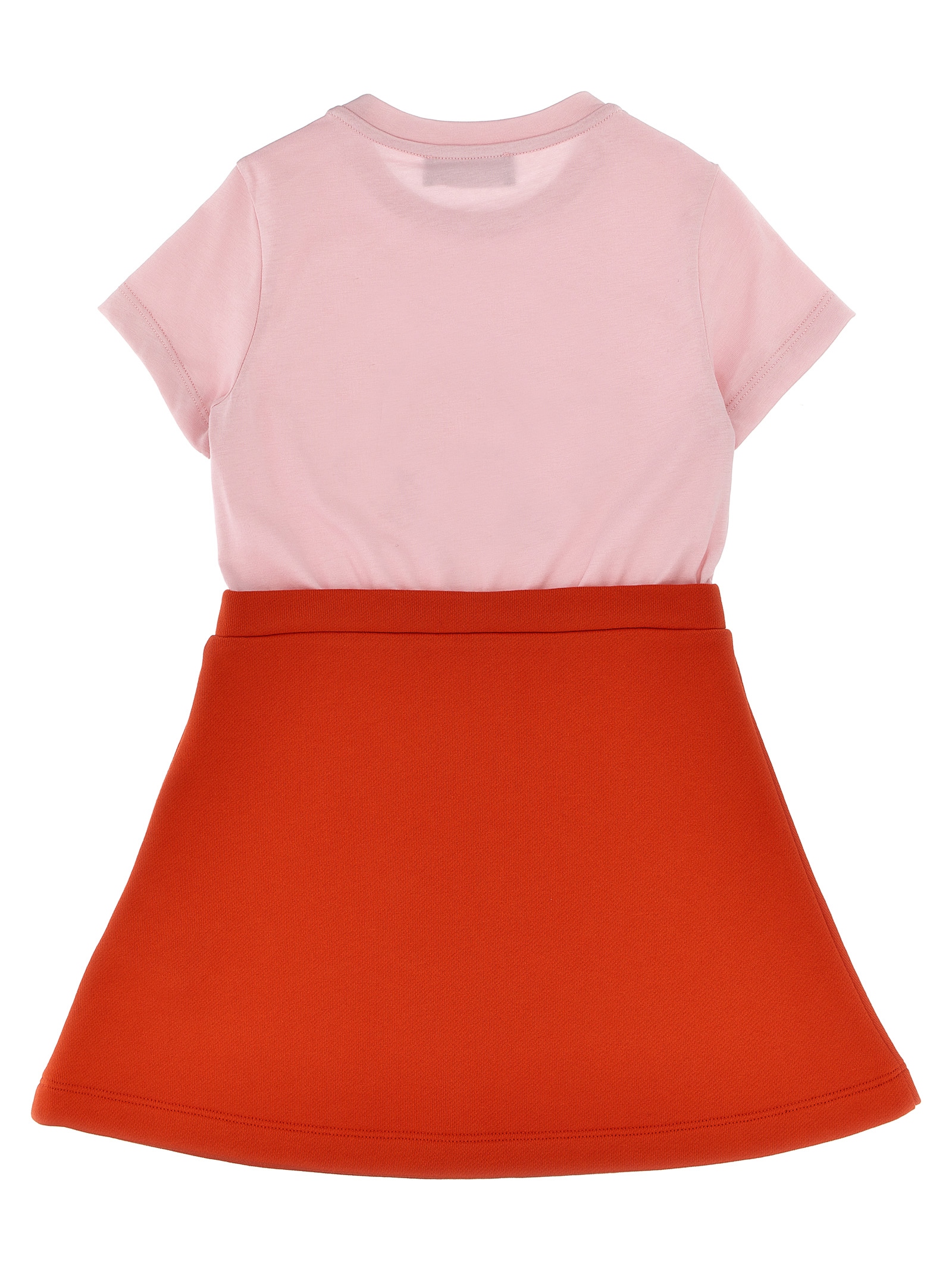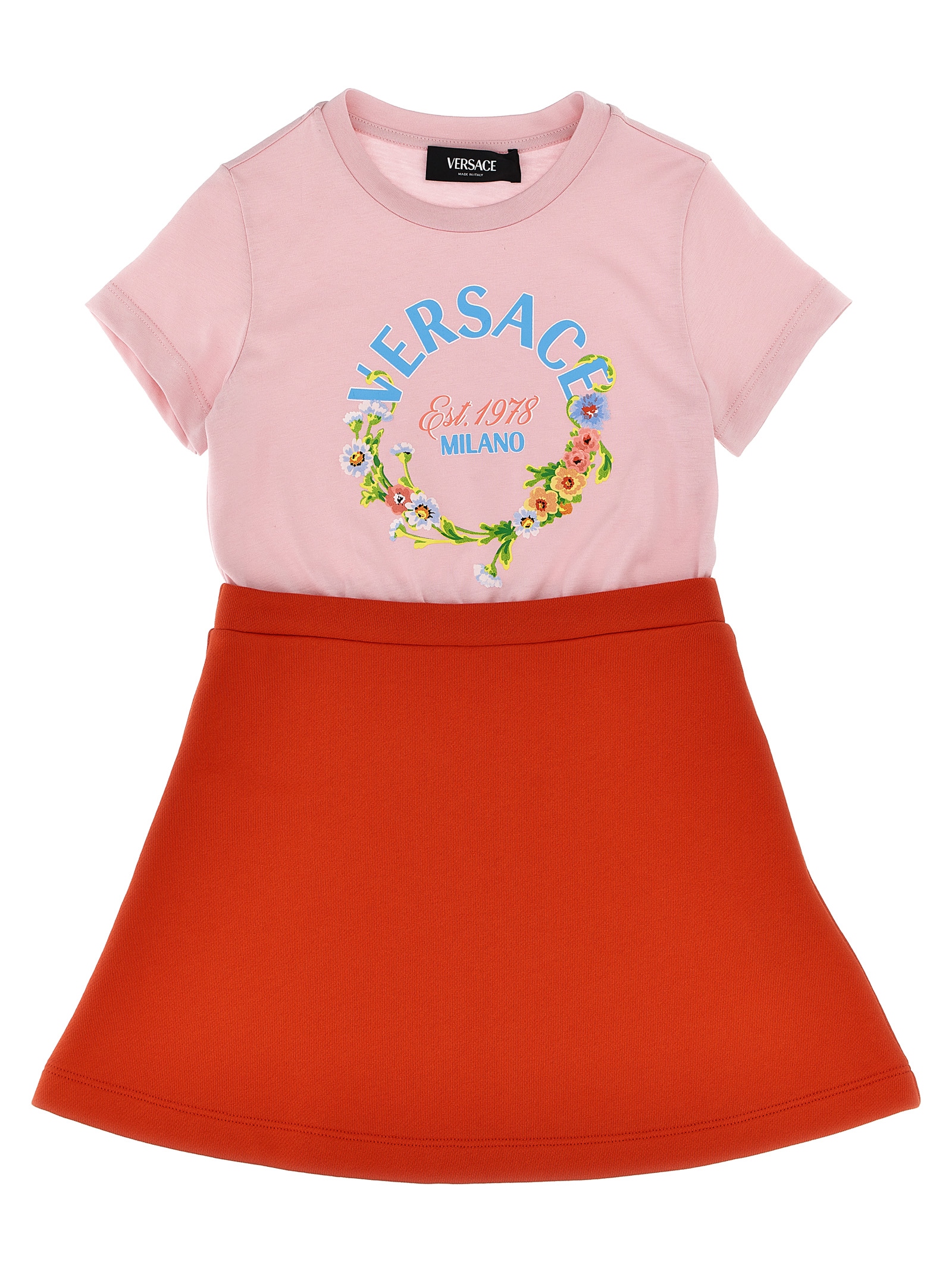Cotton dress consisting of crewneck t-shirt with front print, short sleeves and flared skirt.