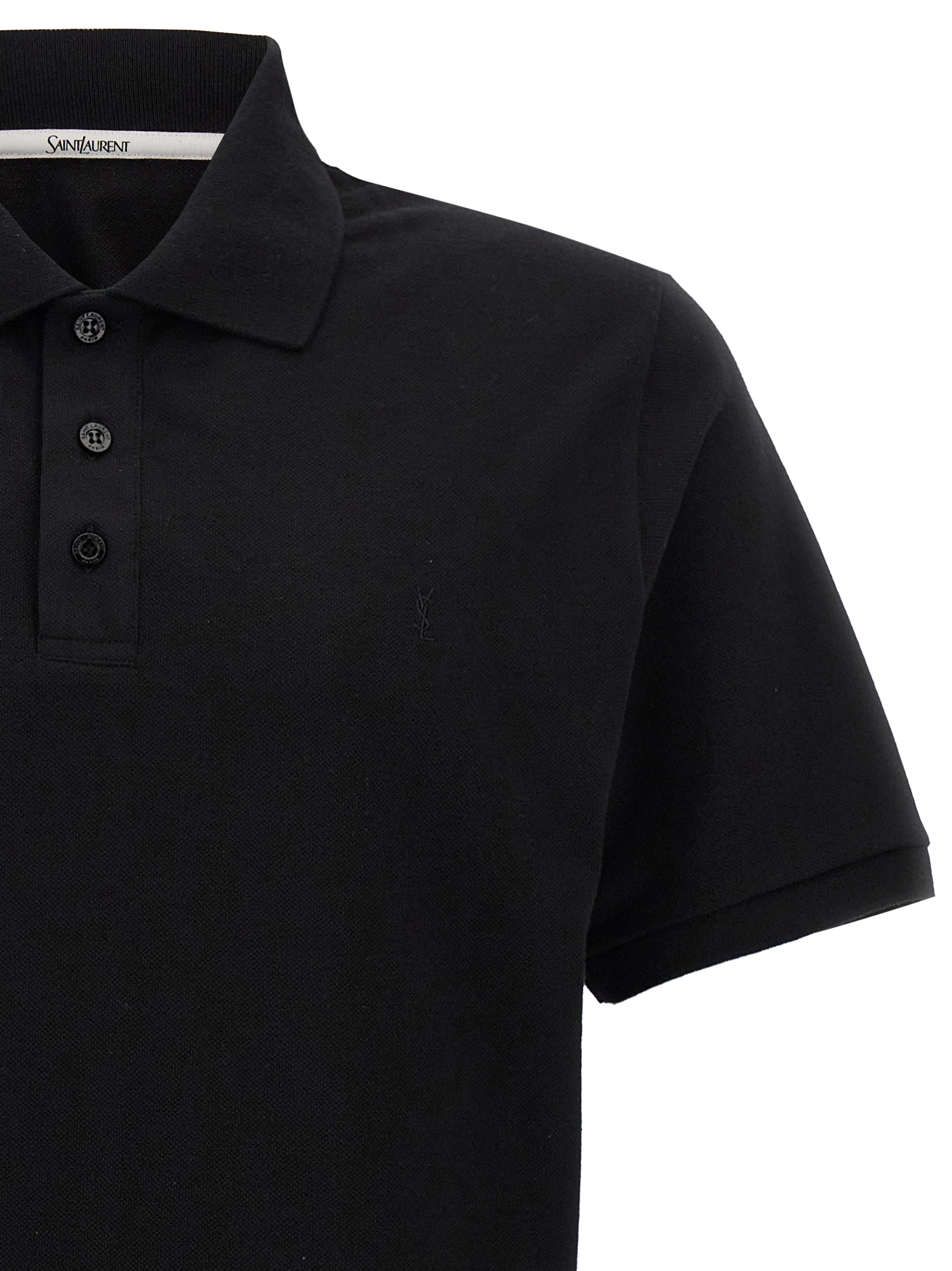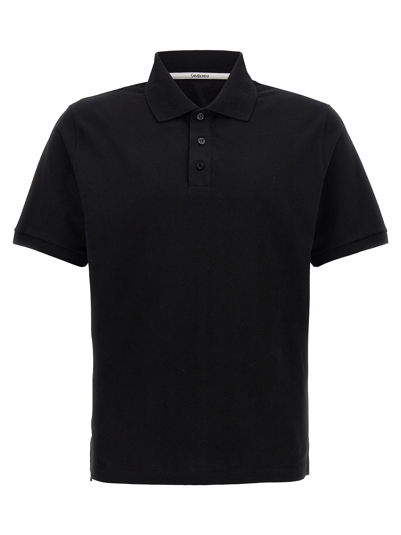 Polo shirt in cotton piqué with tone-on-tone embroidered logo on the front, collar and buttons, and short sleeves.