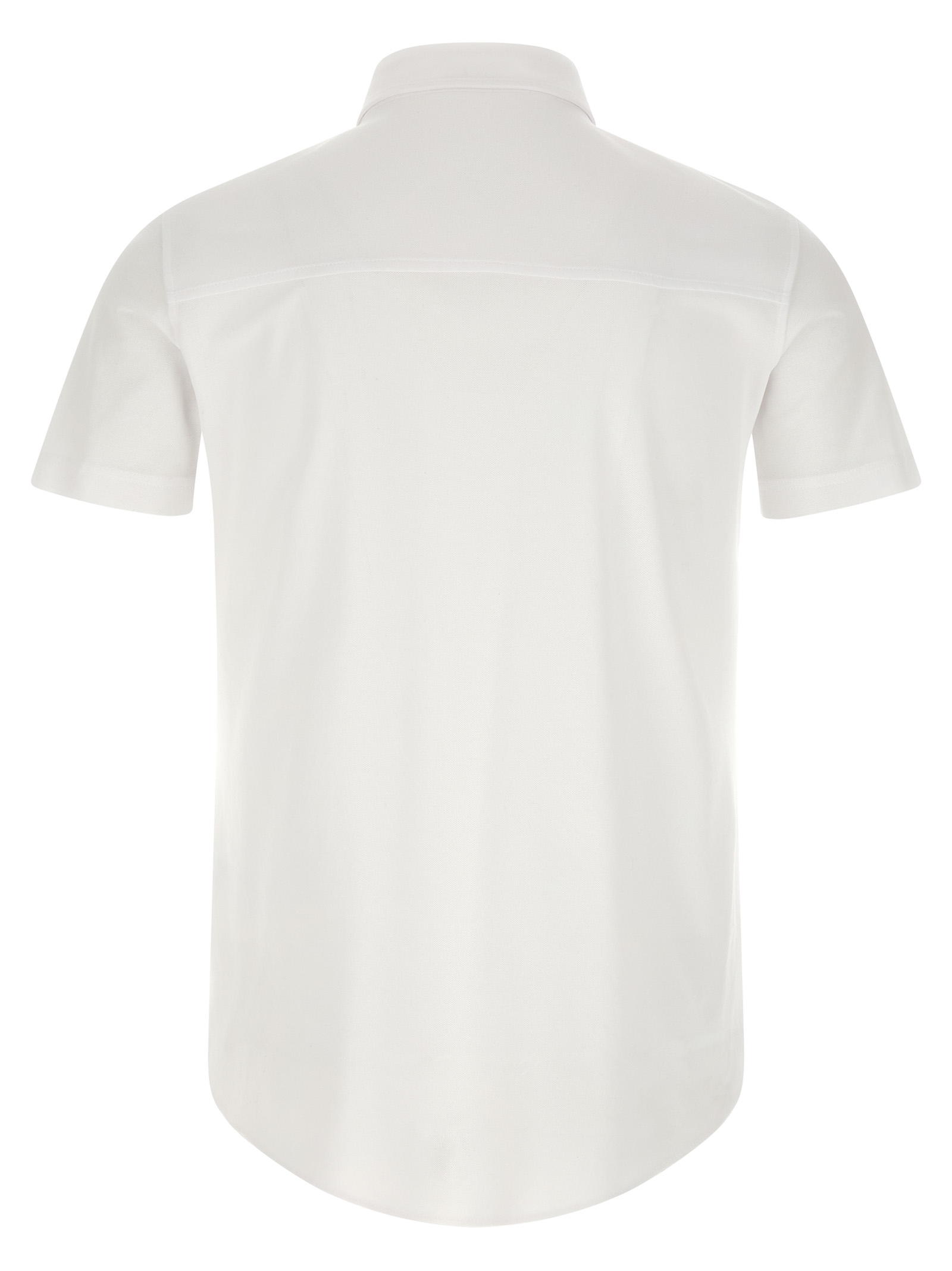 Oxford lightweight cotton button-down shirt, pocket with embroidered logo, front button closure, short sleeves, rounded hem.