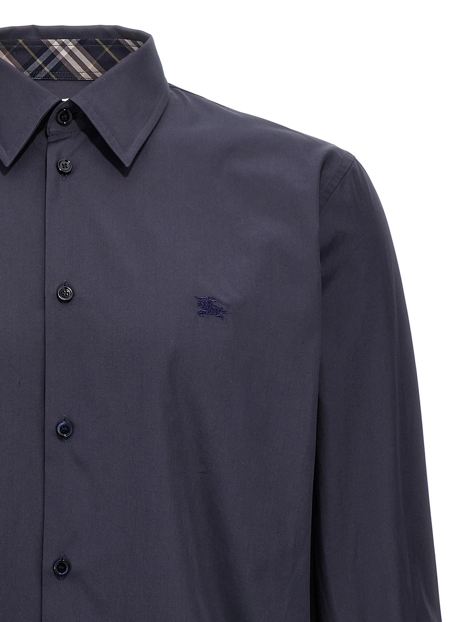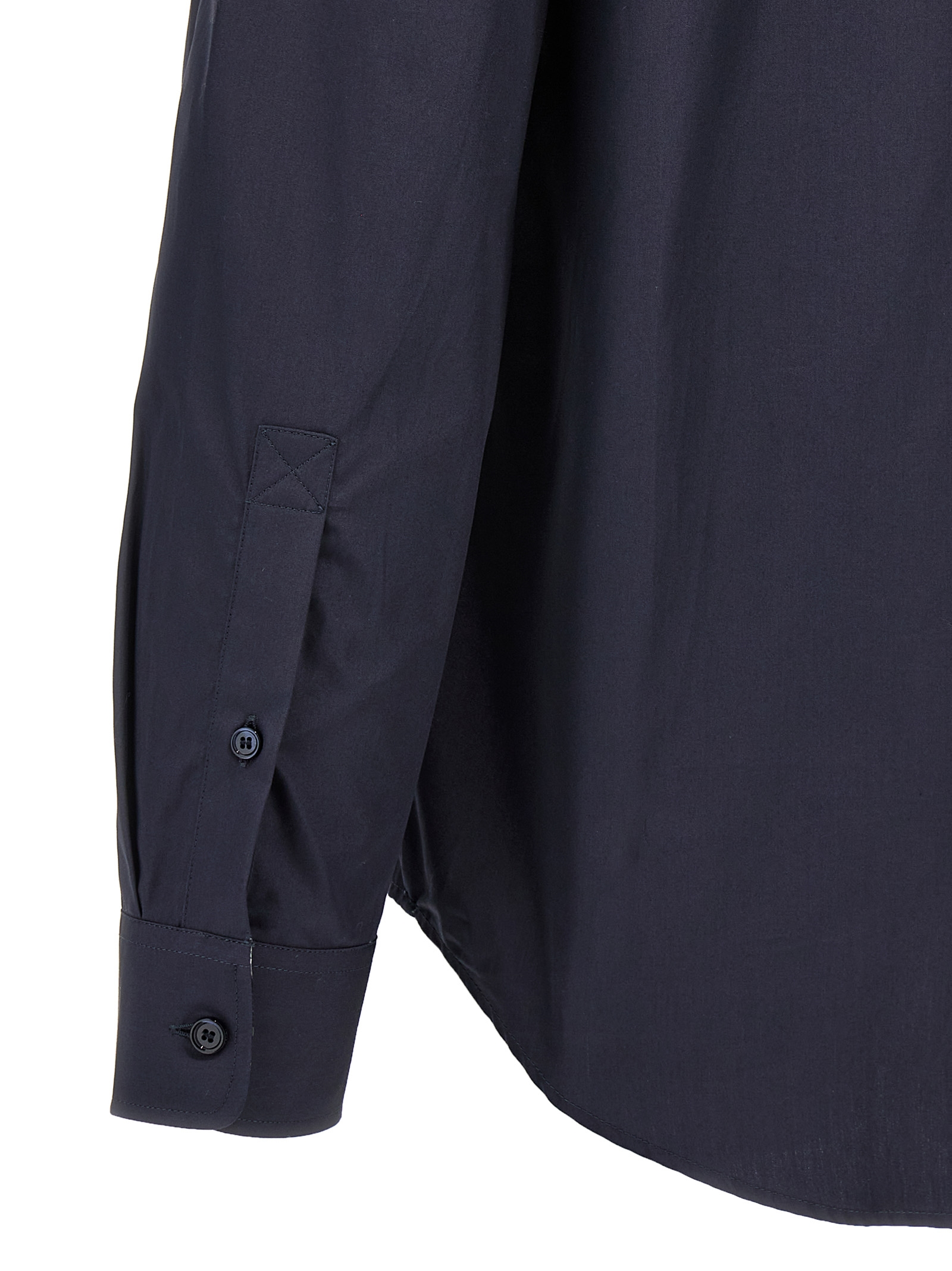 Cotton shirt with tone-on-tone embroidered logo on the front, button closure, long cuffed sleeves.