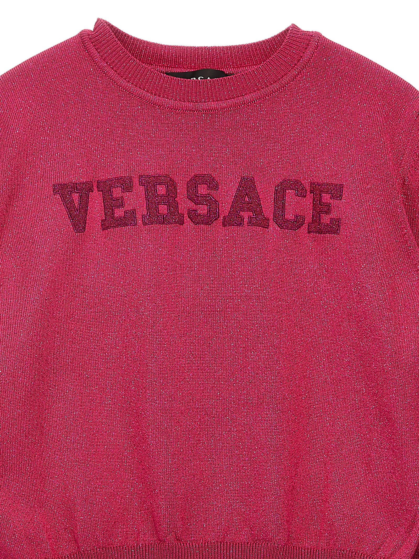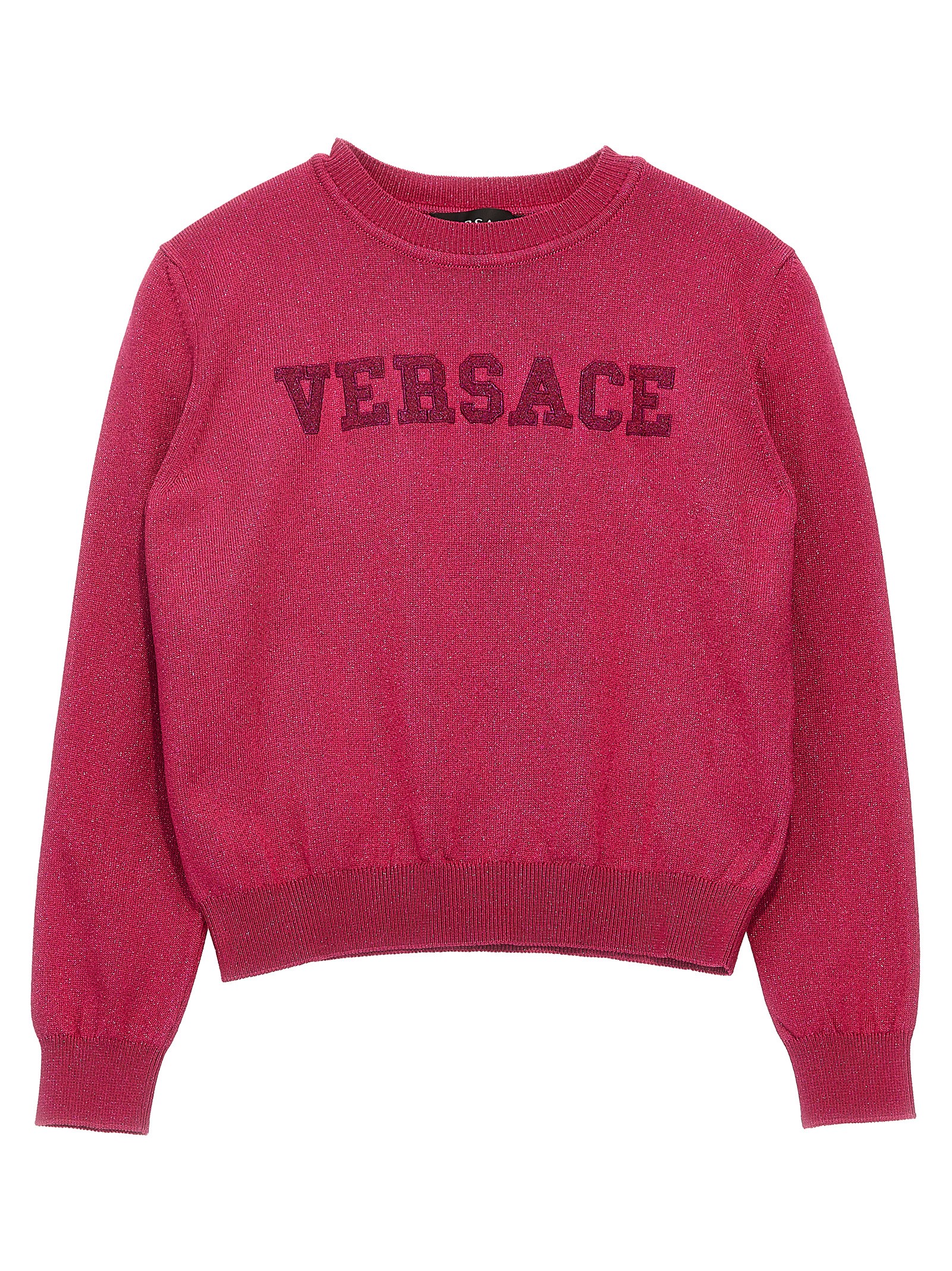 Lurex yarn sweater with front embroidered logo, crewneck, and long cuffed sleeves.