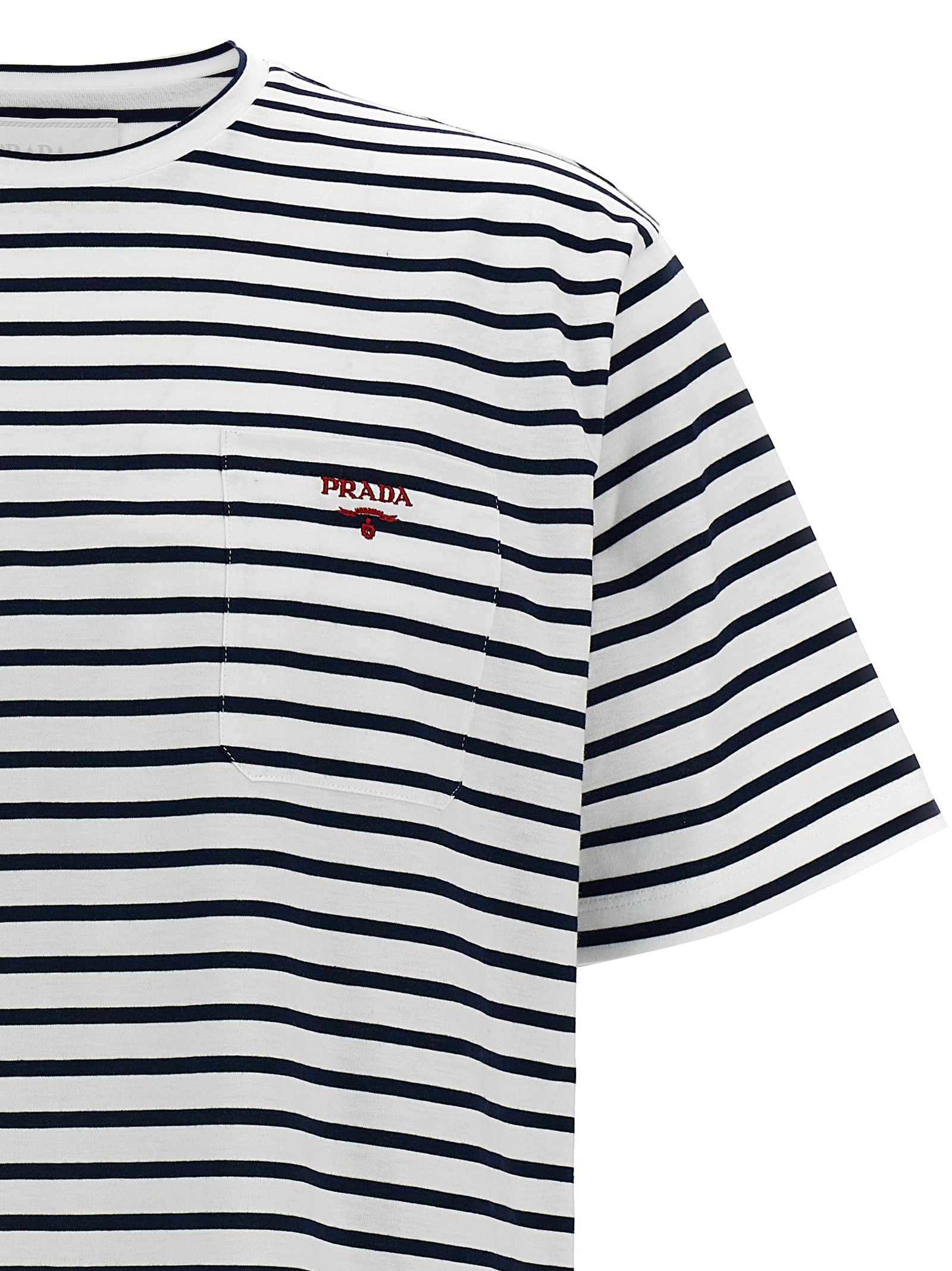 Striped cotton t-shirt, pocket with contrast logo embroidery, crew neck, short sleeves.