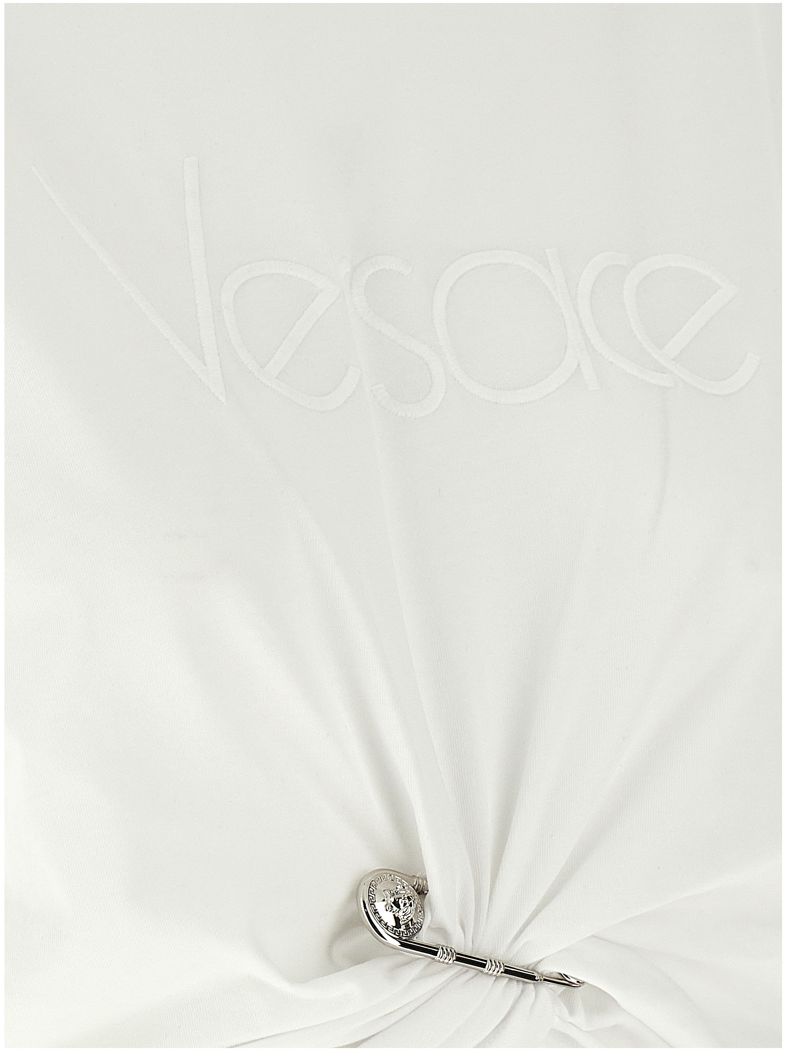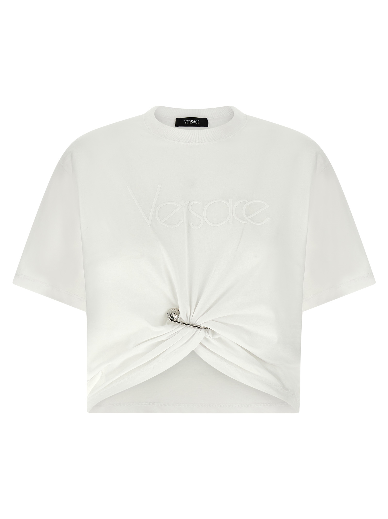 Cotton T-shirt with tone-on-tone embroidered logo on the front, crew neck, ‘Safety pin’ curling and short sleeves.