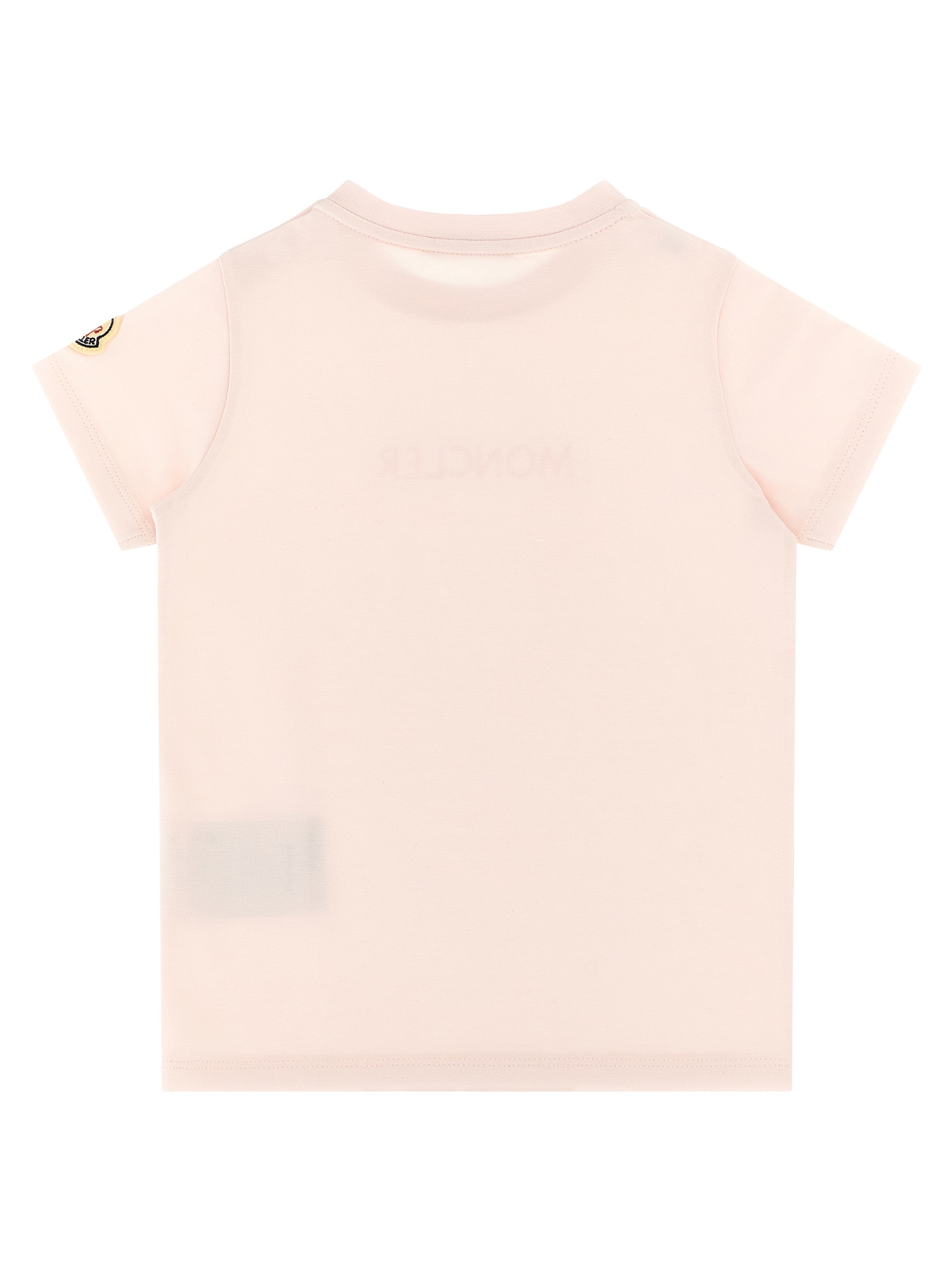 Cotton jersey T-shirt with tone-on-tone logo embroidery on the front, crew neck, snap buttons on the left shoulder, short sleeves with felt logo patch appliqué.