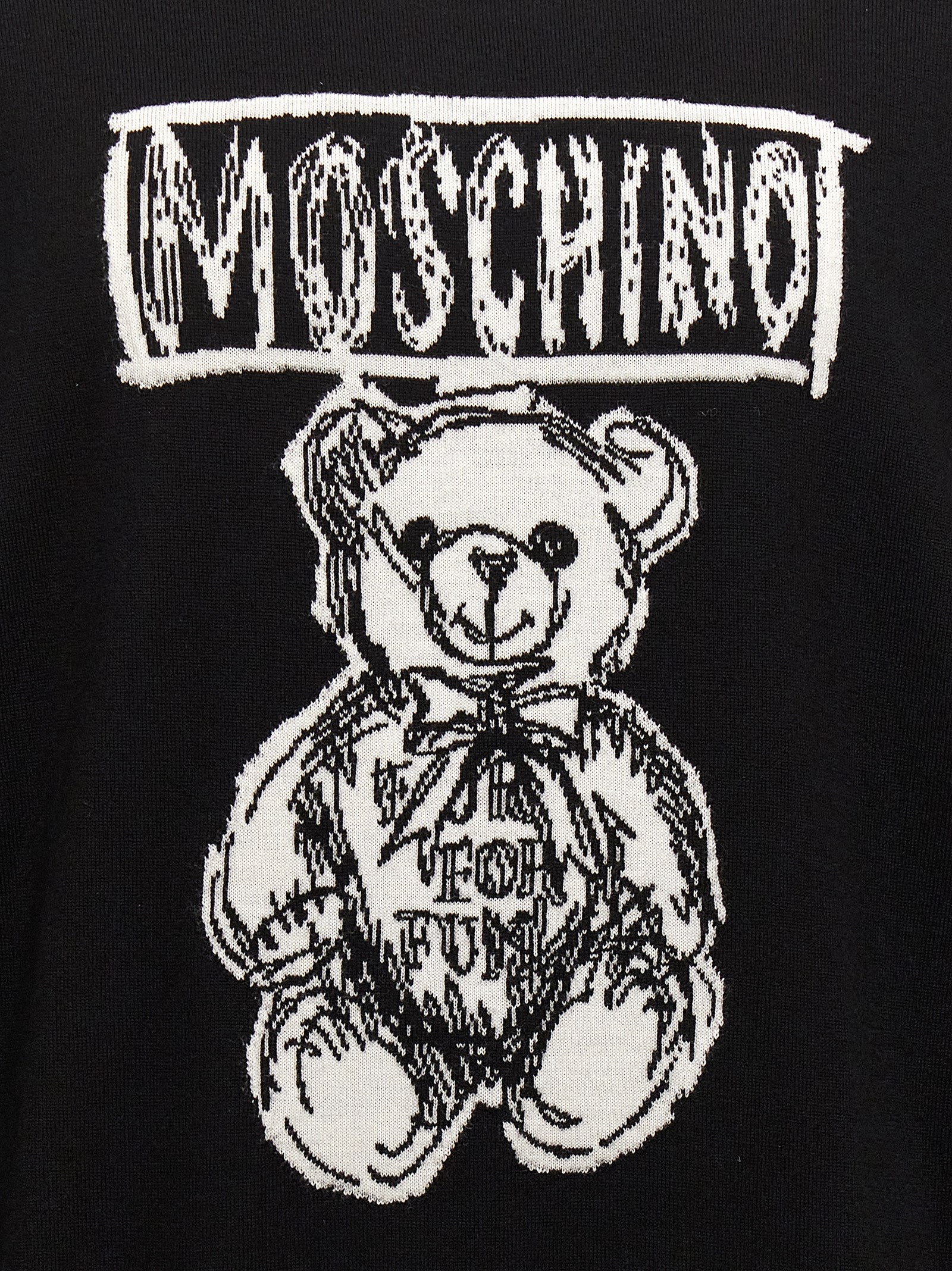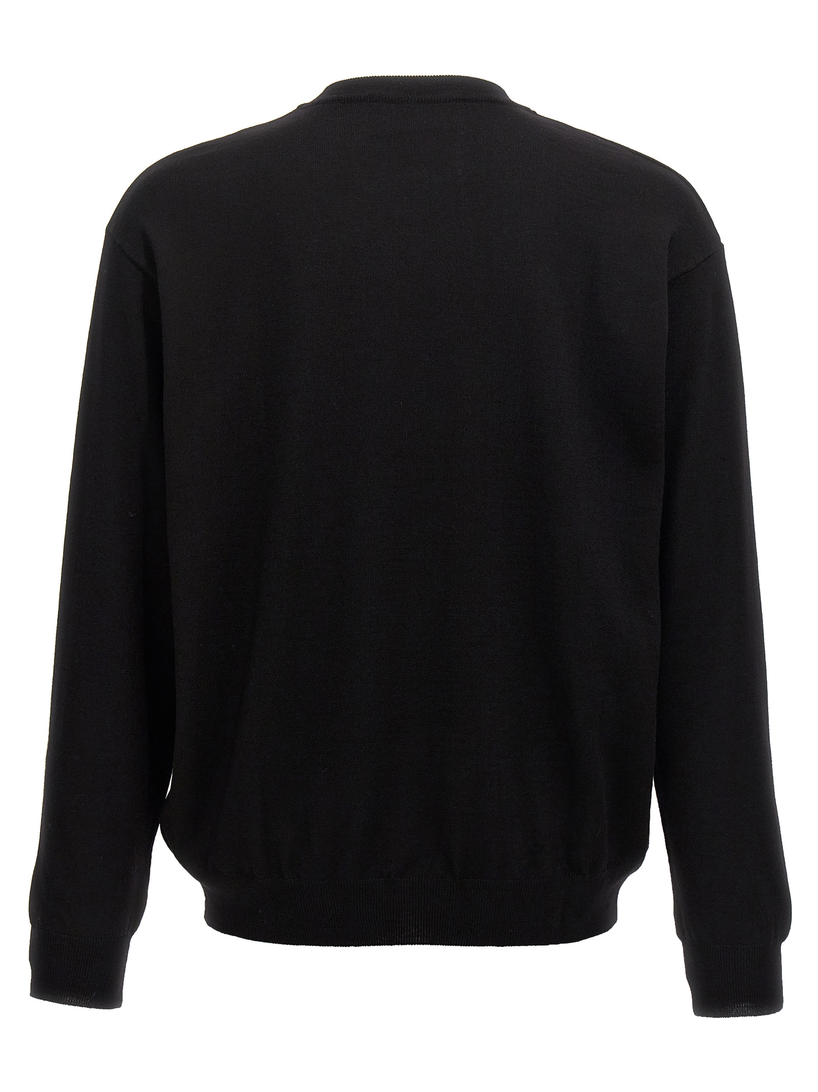 Wool sweater with front logo intarsia, crew neck, long cuffed sleeves.