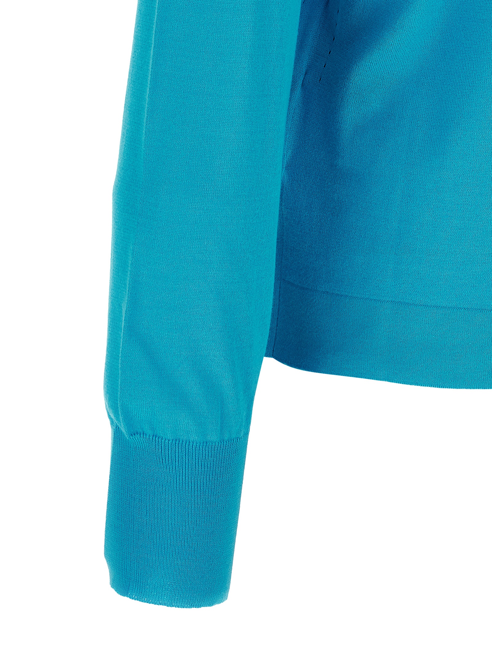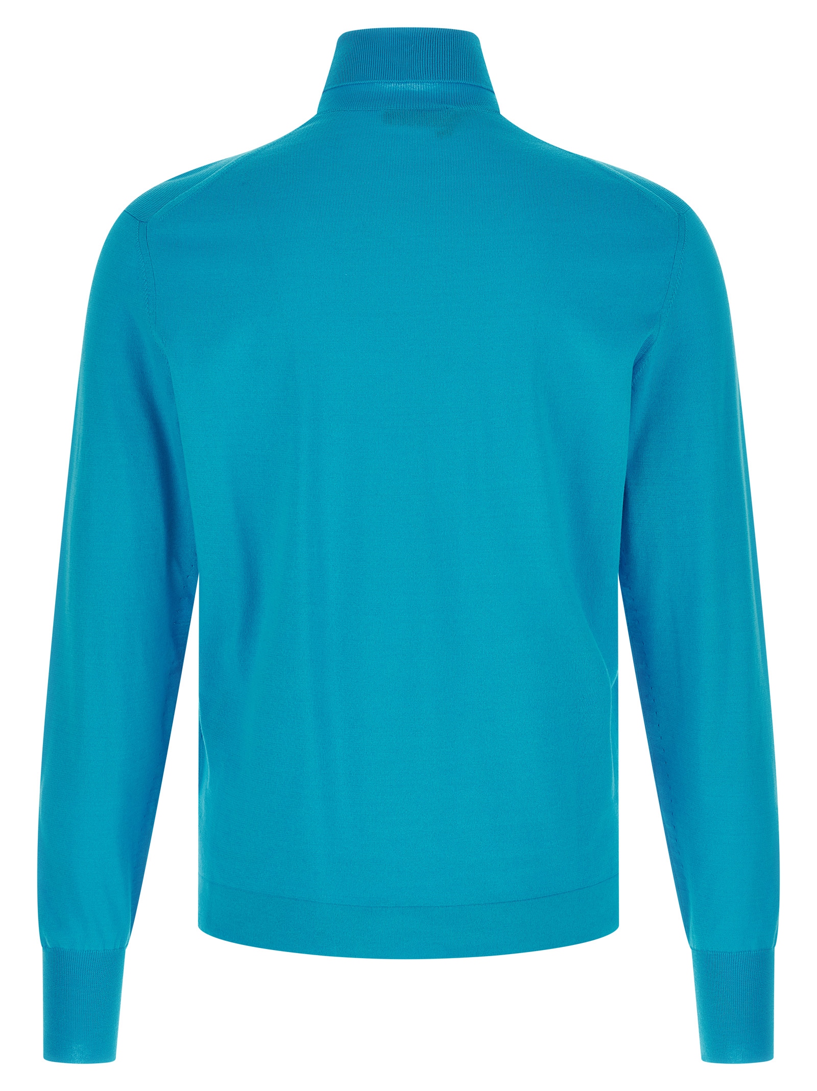 18 fineness cotton turtleneck sweater, turned-up high neck with contrast logo intarsia, long cuffed sleeves.