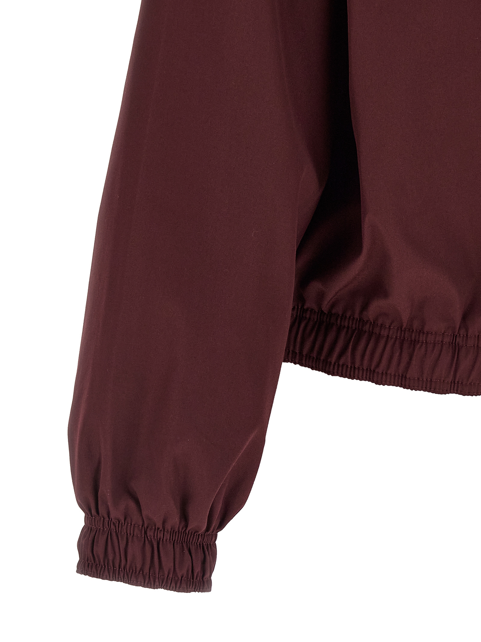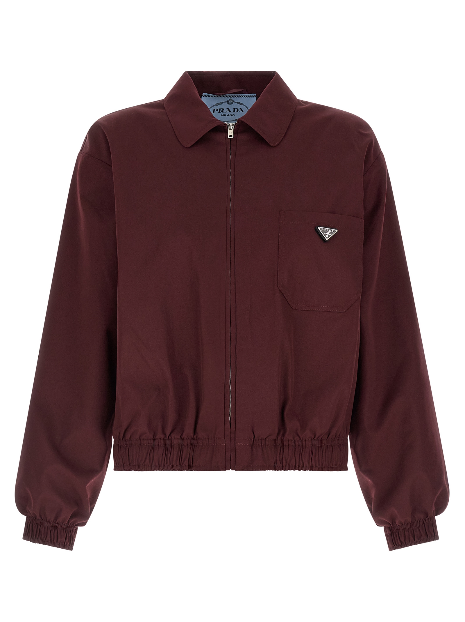Poplin jacket, unlined, pocket with triangle logo in enamelled metal, front zip closure, shirt collar, long sleeves with elastic cuffs, elastic and drawstring on the hem.