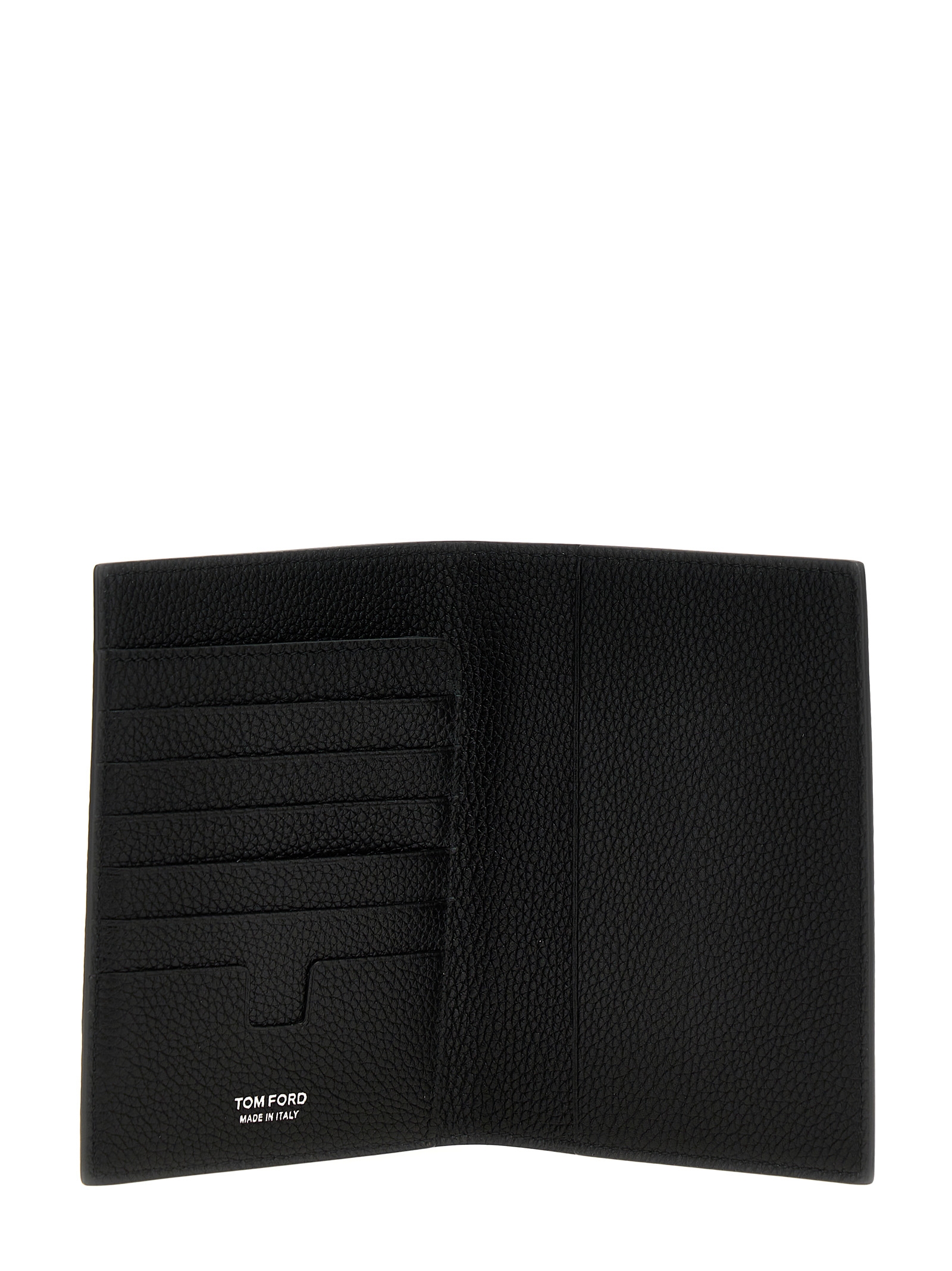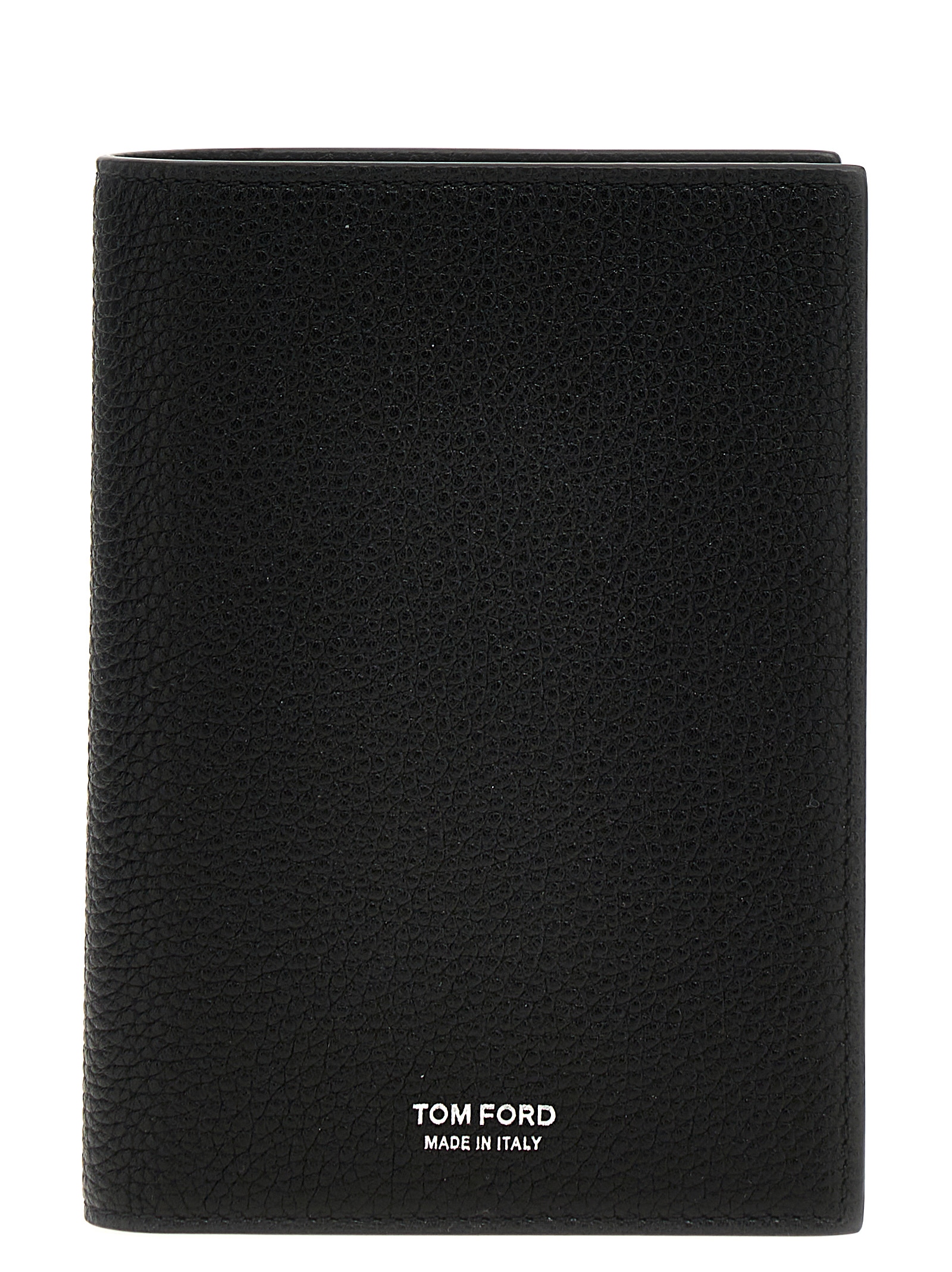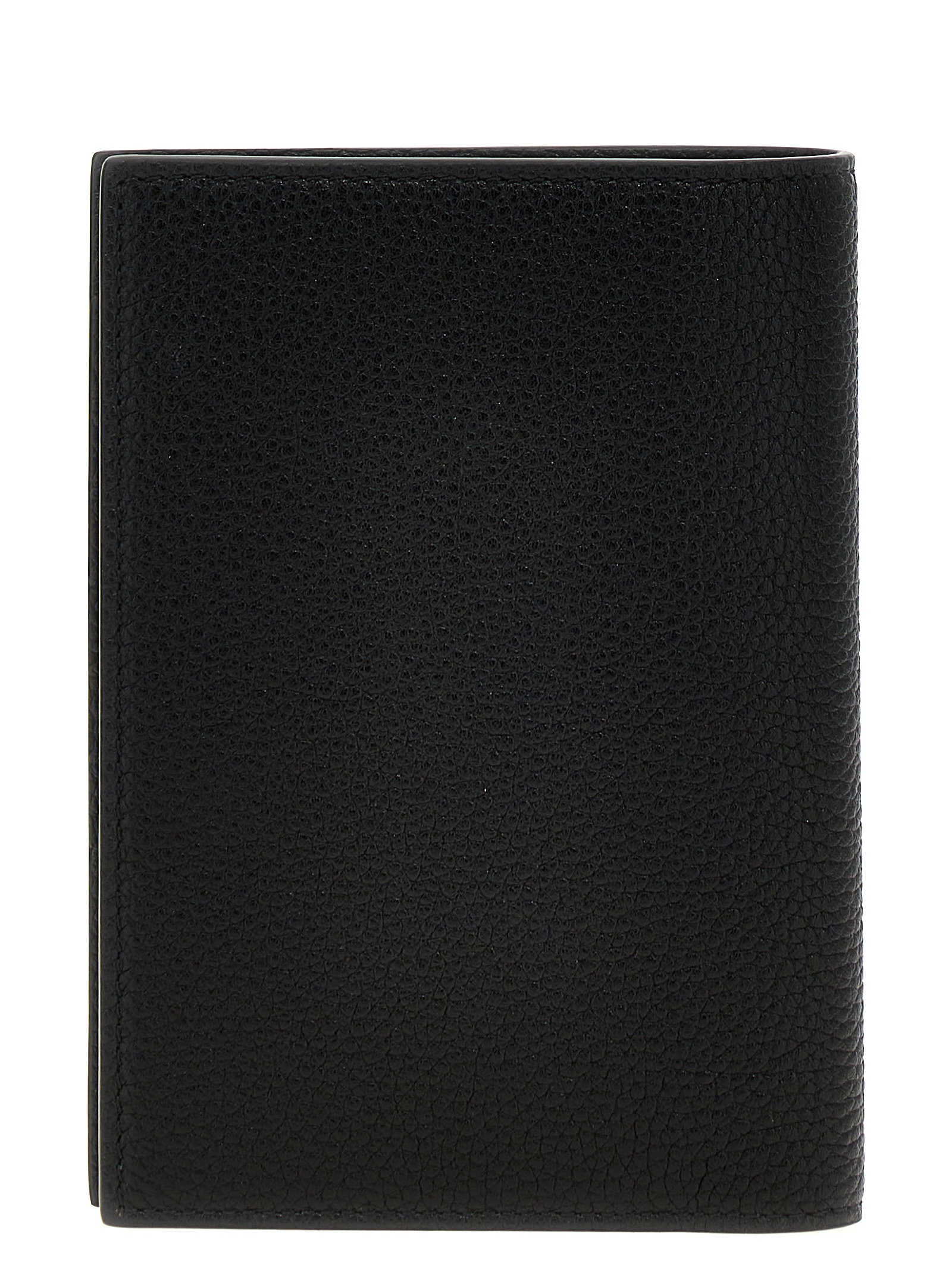 Passport holder in grainy leather with folding opening, and front embossed logo.