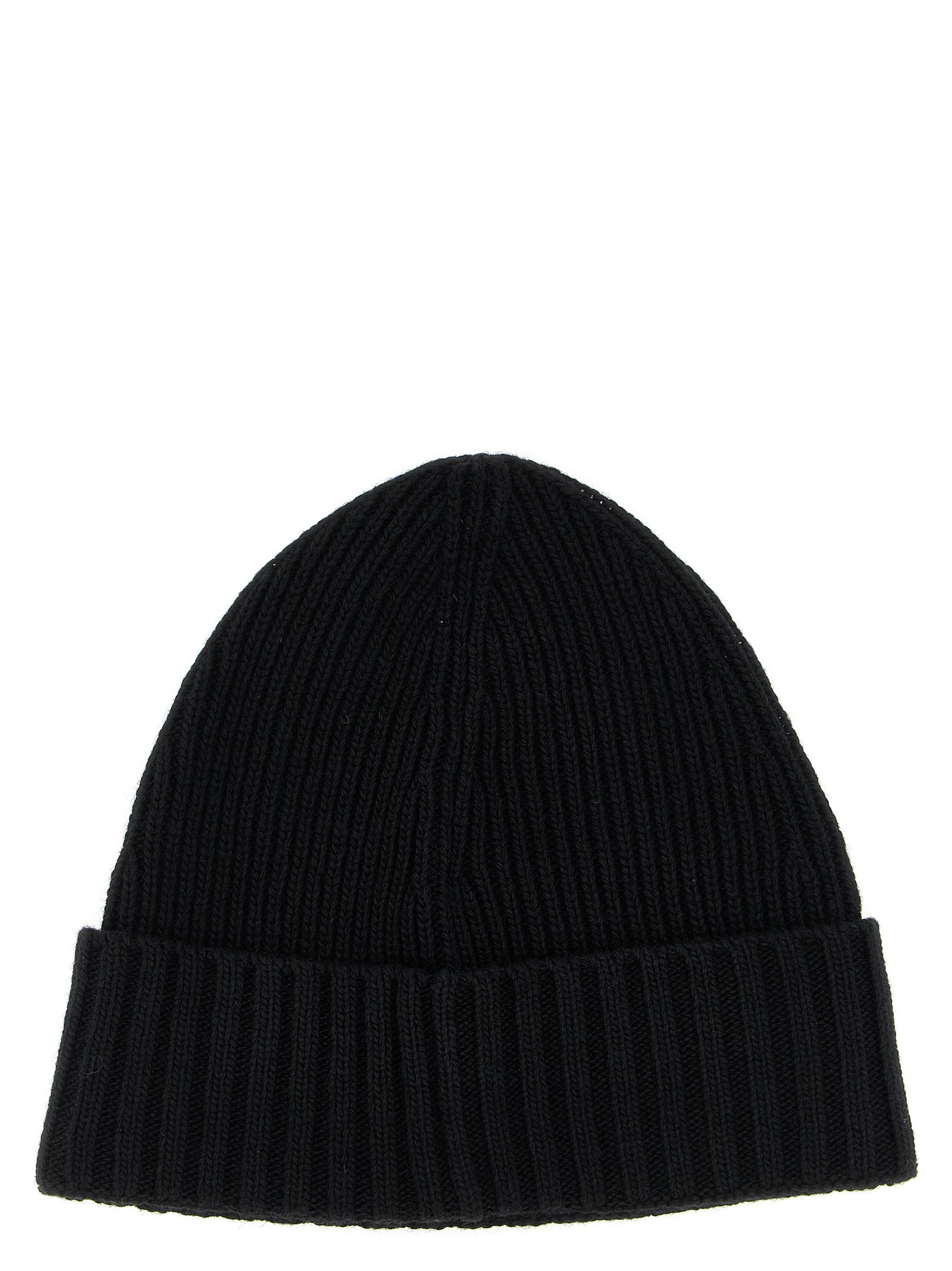 Ribbed wool, viscose and cashmere blend beanie with front logo patch.