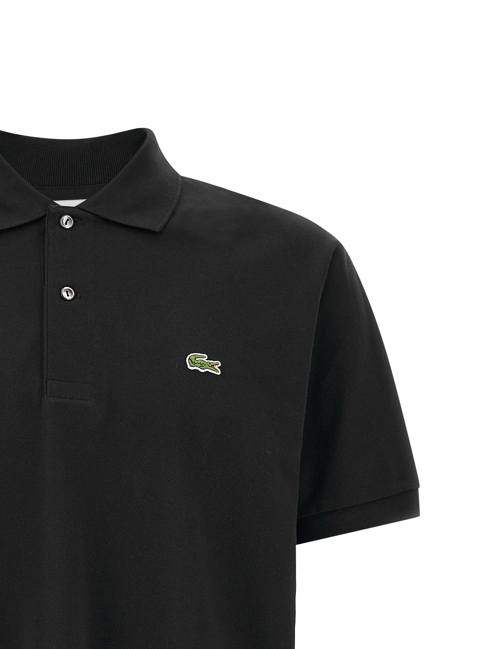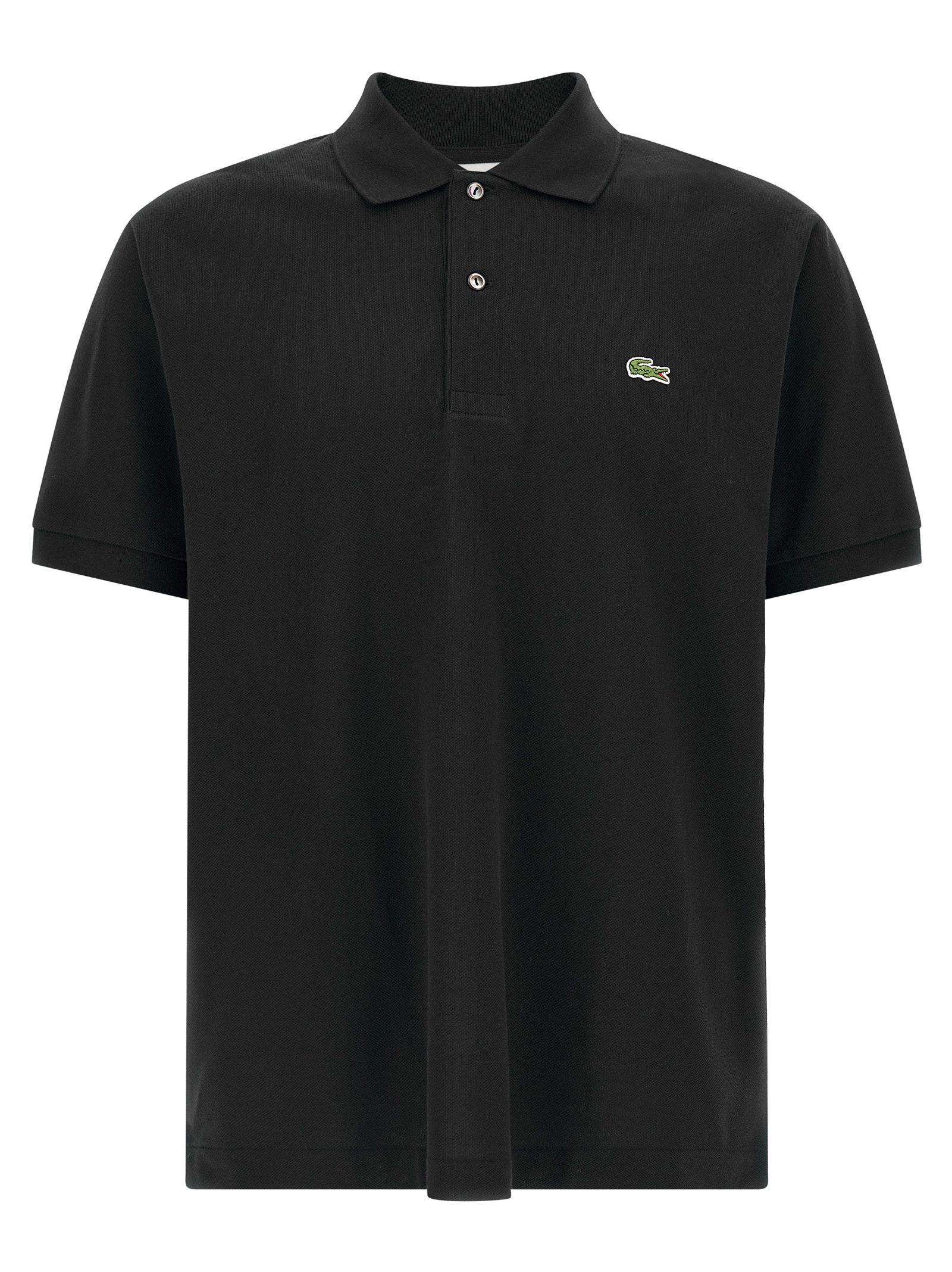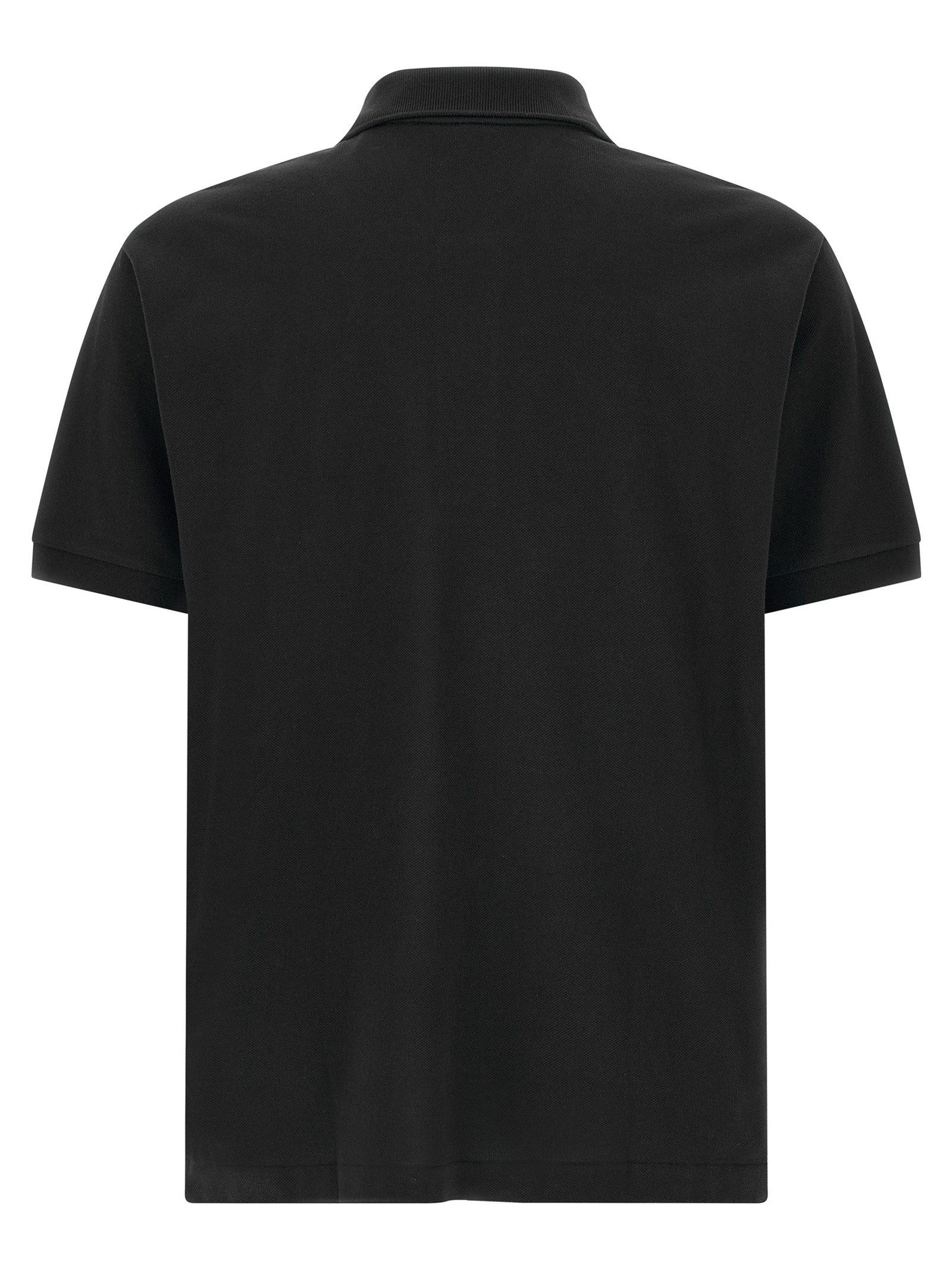Cotton piqué polo shirt, front logo patch, collar and buttons, short sleeves, side vents.