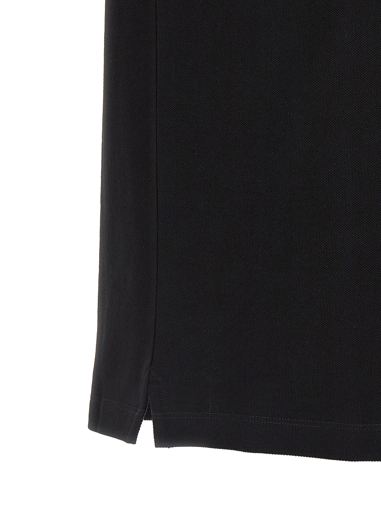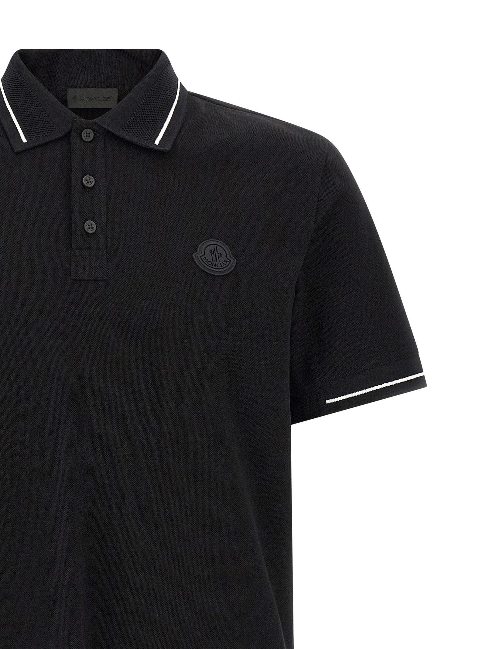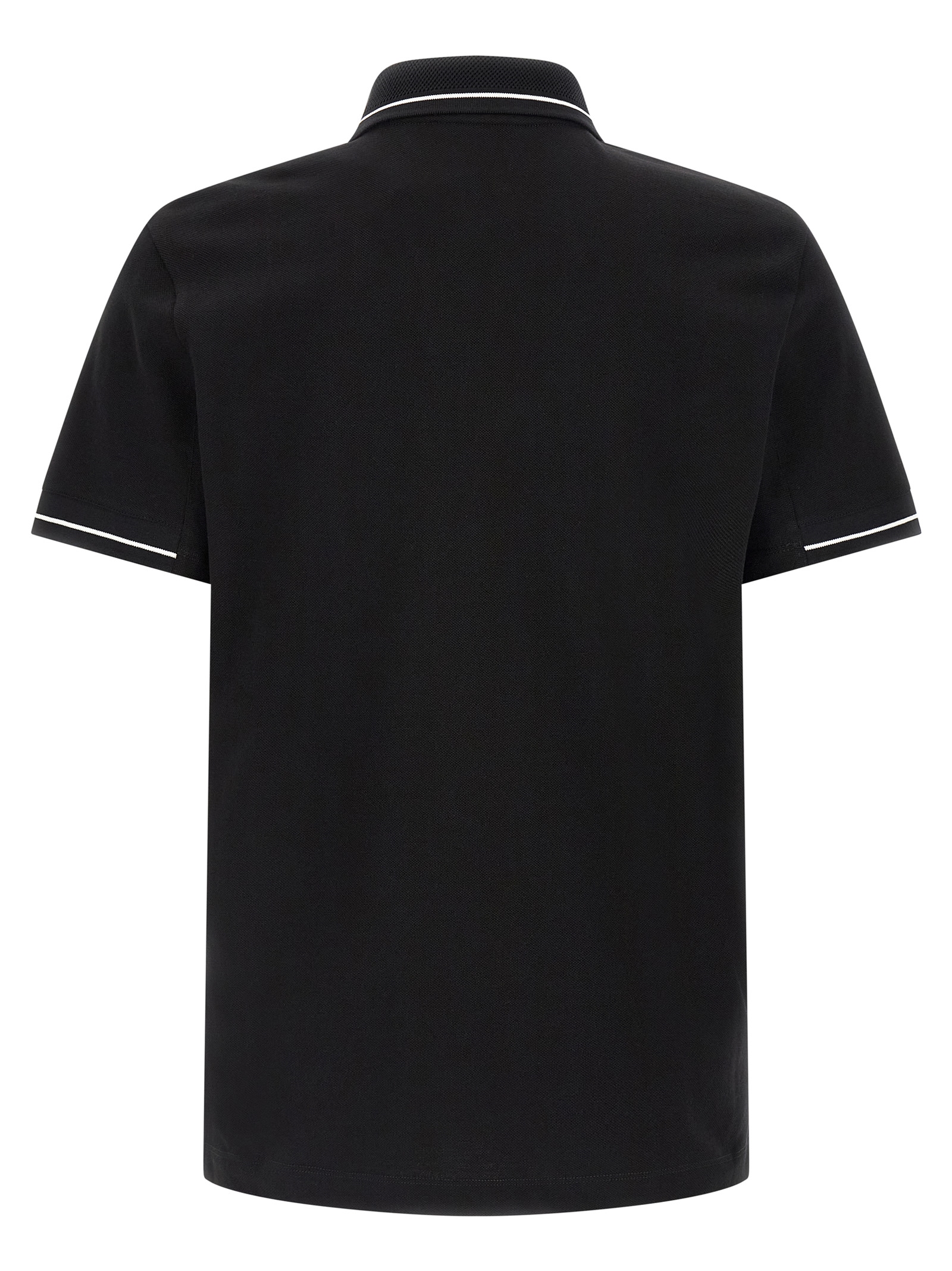 Cotton piquet polo shirt with contrasting details, tone-on-tone silicone logo patch on the front, collar and buttons, short sleeves with cuffs, side slits.