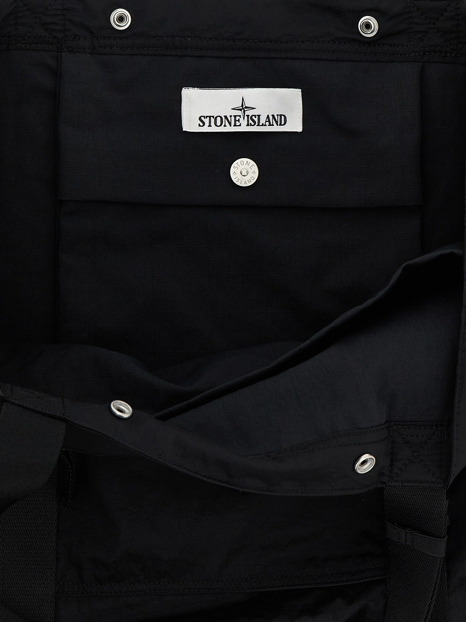ECONYL® shopping bag, logo patch and pocket with front zip closure, snap button closure, double adjustable handle.